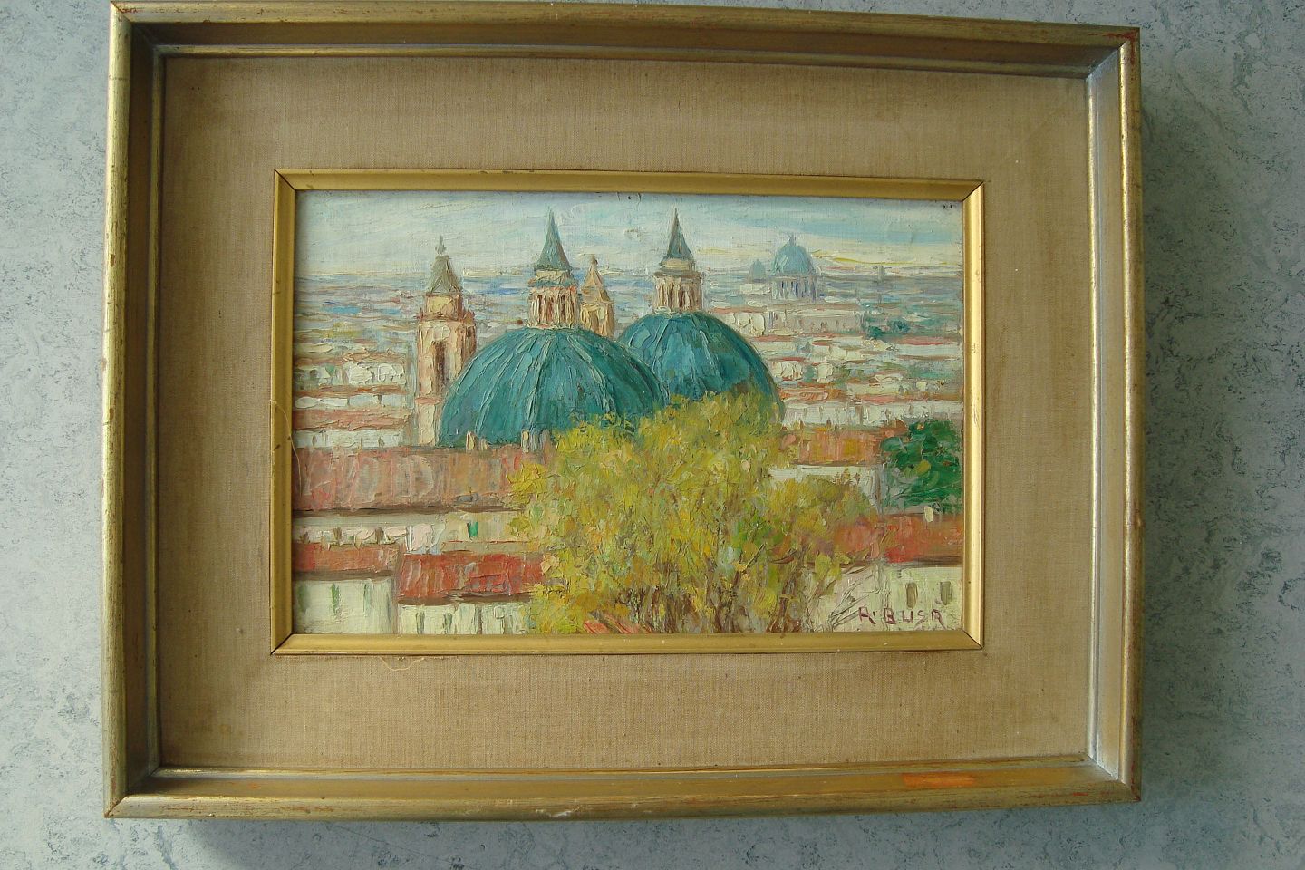 Maleri af Armando Busa - Udsigt udover italiensk by.