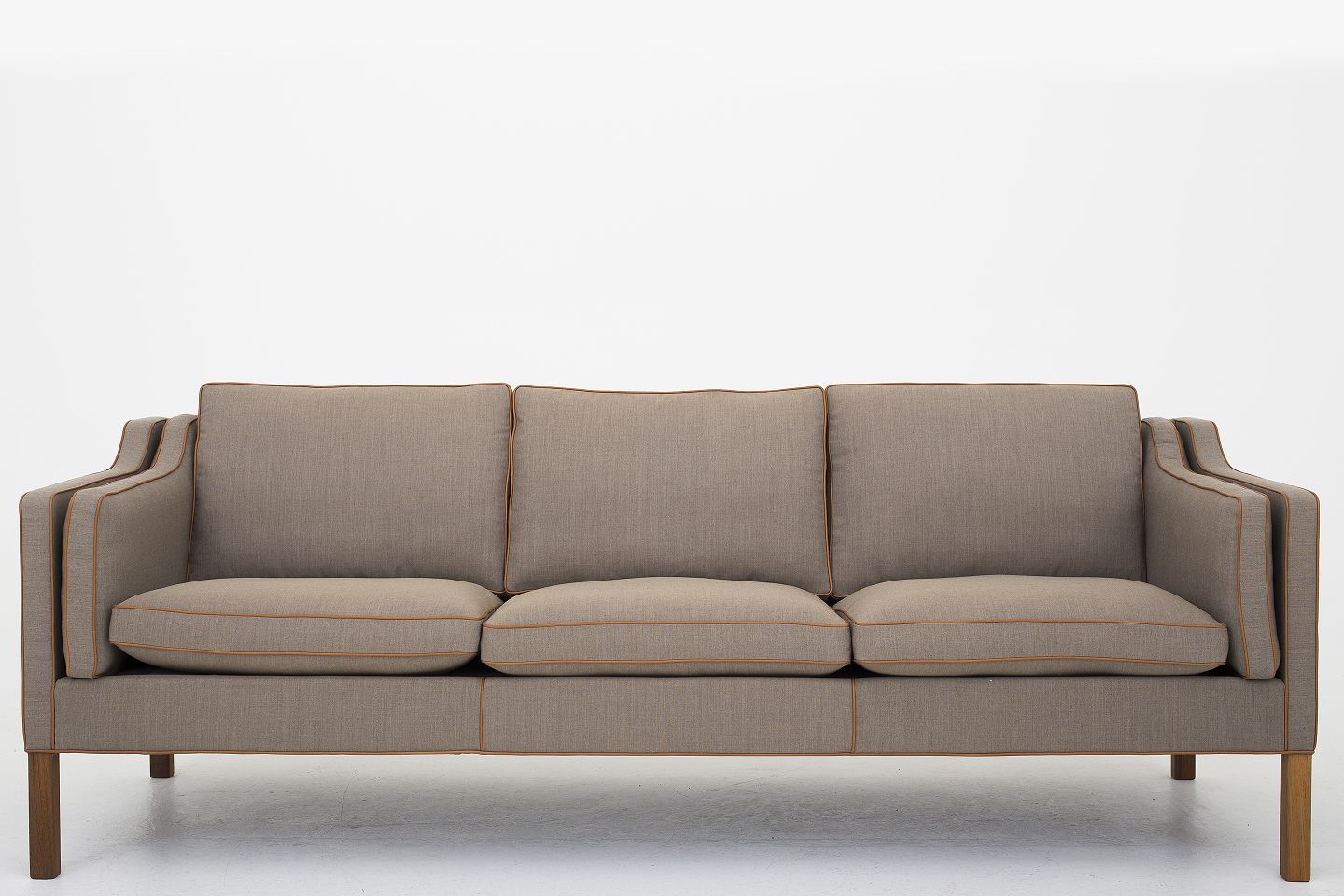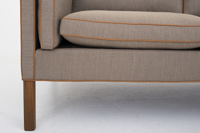 Nybetrukket med Remix stof med keder i cognac læder og ben i teak