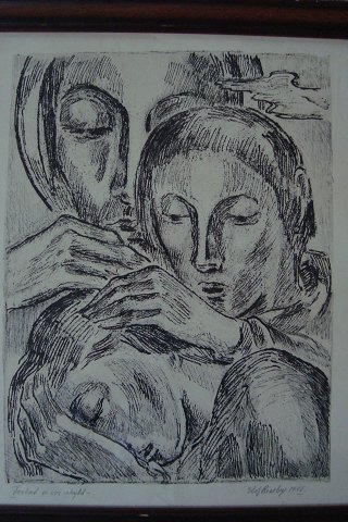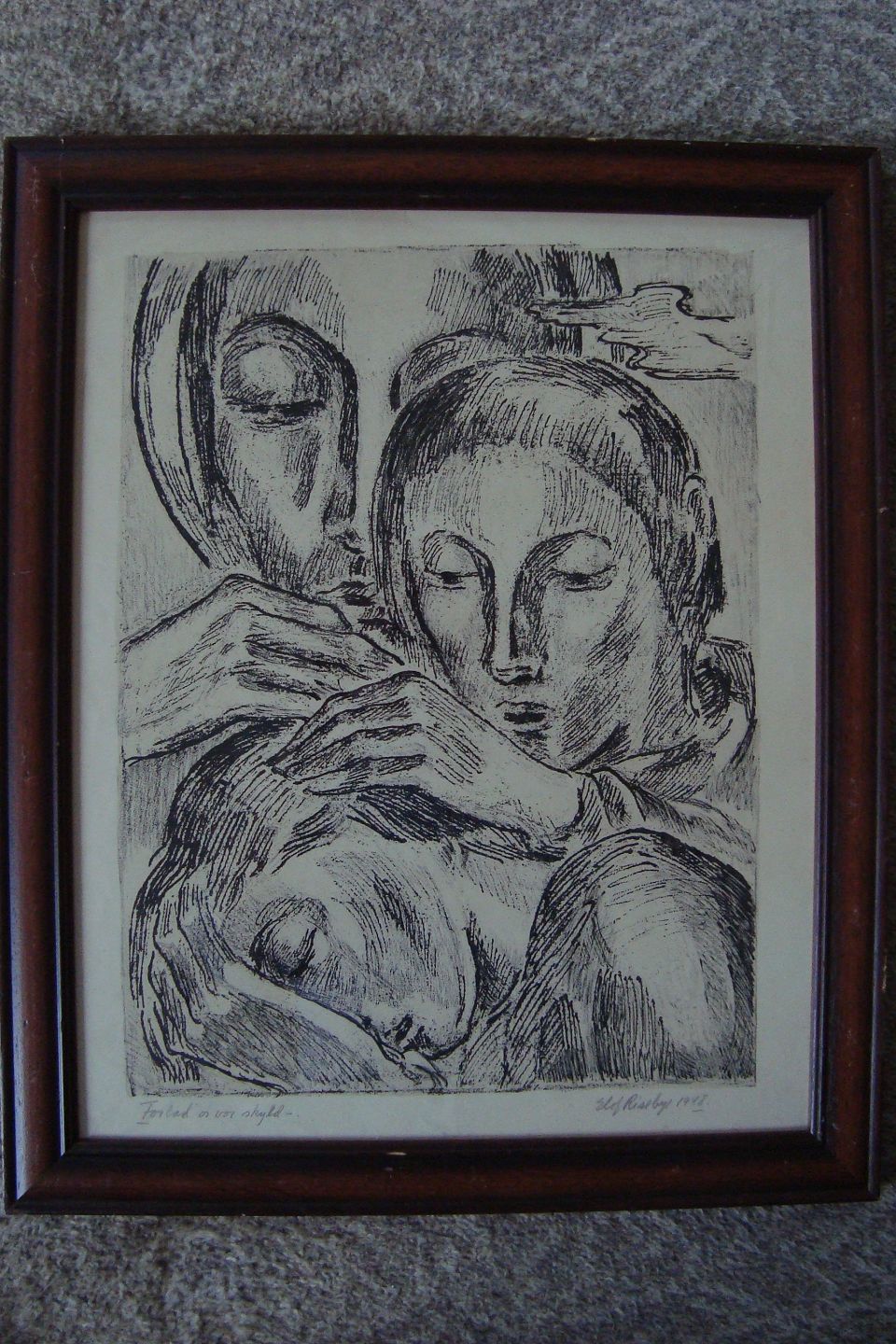 Text available in Danish: Litografi af Elof Risebye - Fadervor 1948.