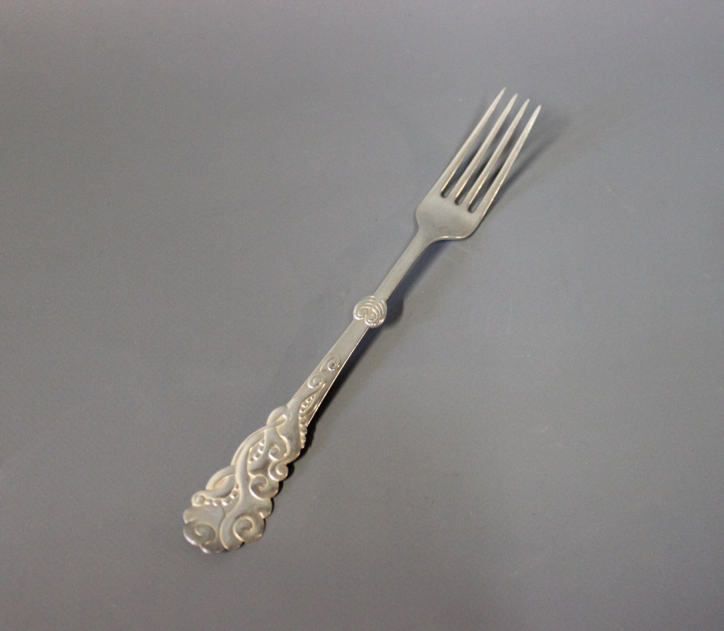 Middagsgaffel i Tang, tretårnet sølv.
