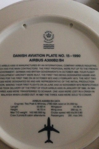 Danish Aviation Plate No.15 - 1990 Airbus A300B2/B4 Snorre Viking Airbus A300B4 1980 SAS 1987.