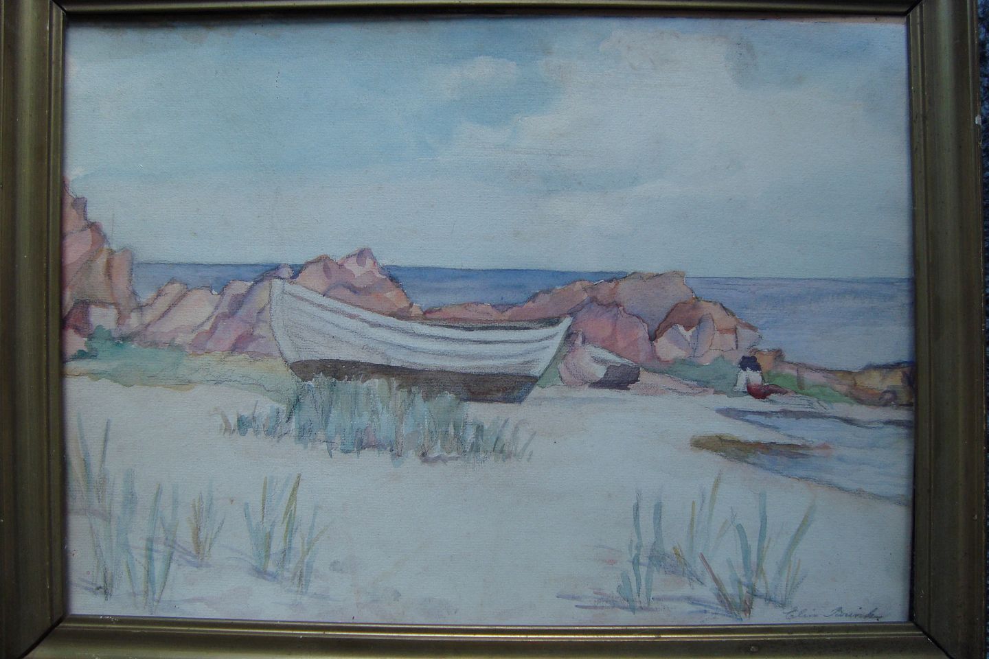 Akvarel af Elin Brink - Båd på stranden, Sverige.