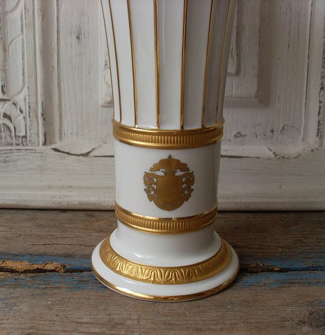 Royal Copenhagen Hetsch vase dekoreret med guld samt Dansk Litograflaug´s logo