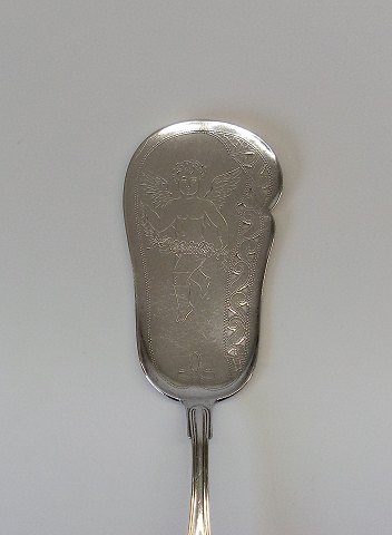 Antik Dobbeltriflet fiskespade smukt dekoreret med en engel med blomster krans.