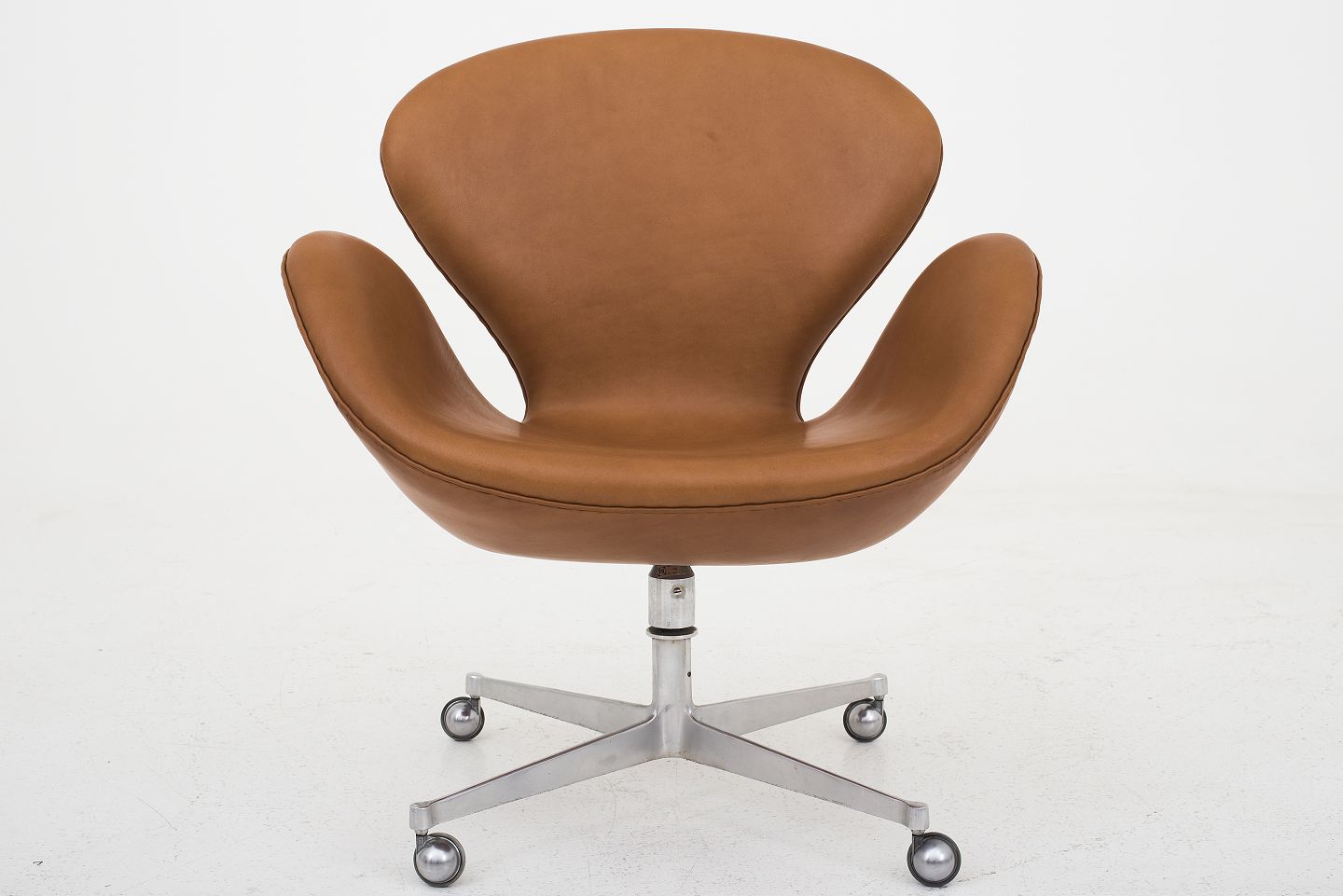 AJ 3324 - Nybetrukket "Svanen" i KLASSIK Cognac-læder med hjul og vip. Gammel fod.