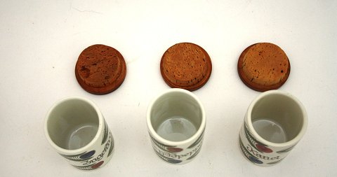Rørstrand, Dalom fajance, krydderikrukker. Højde 9,5 cm. Diameter 5,5 cm. Pris: 100 kr. pr. stk.
