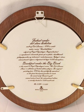Kgl. platter med motiv efter Carl Larsson. Fremstillet i 9500 eksemplarer, rammer af sortlakeret træ. Ø 26 cm.