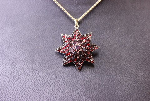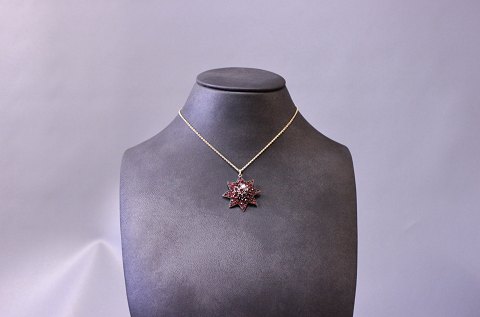 Forgyldt kæde med vedhæng af granater.