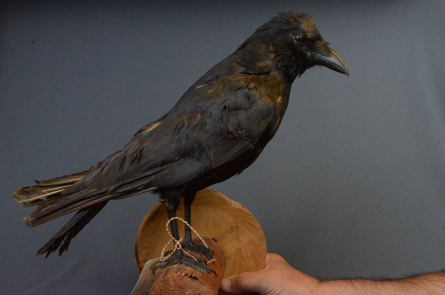 Udstoppet ravn monteret på vægophæng af træ , h: 42 cm