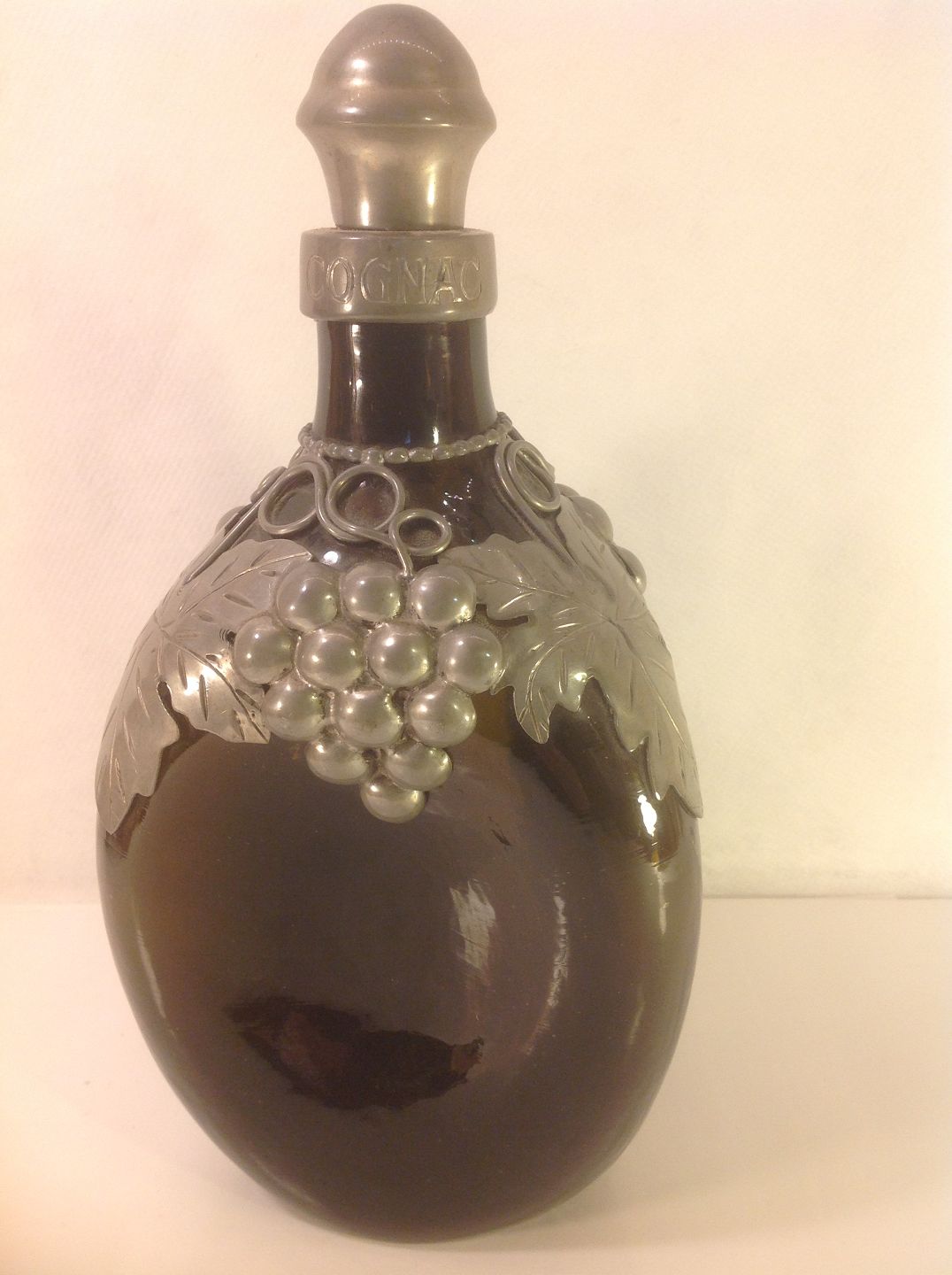 Karaffe mit Zinn Halterungen.