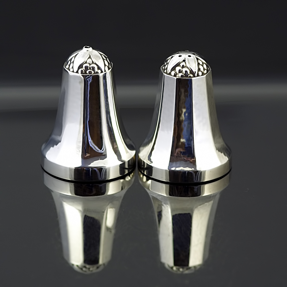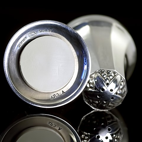 Georg Jensen. Salt og peberbøsse i Sterling Sølv. #423A - Acorn / Konge