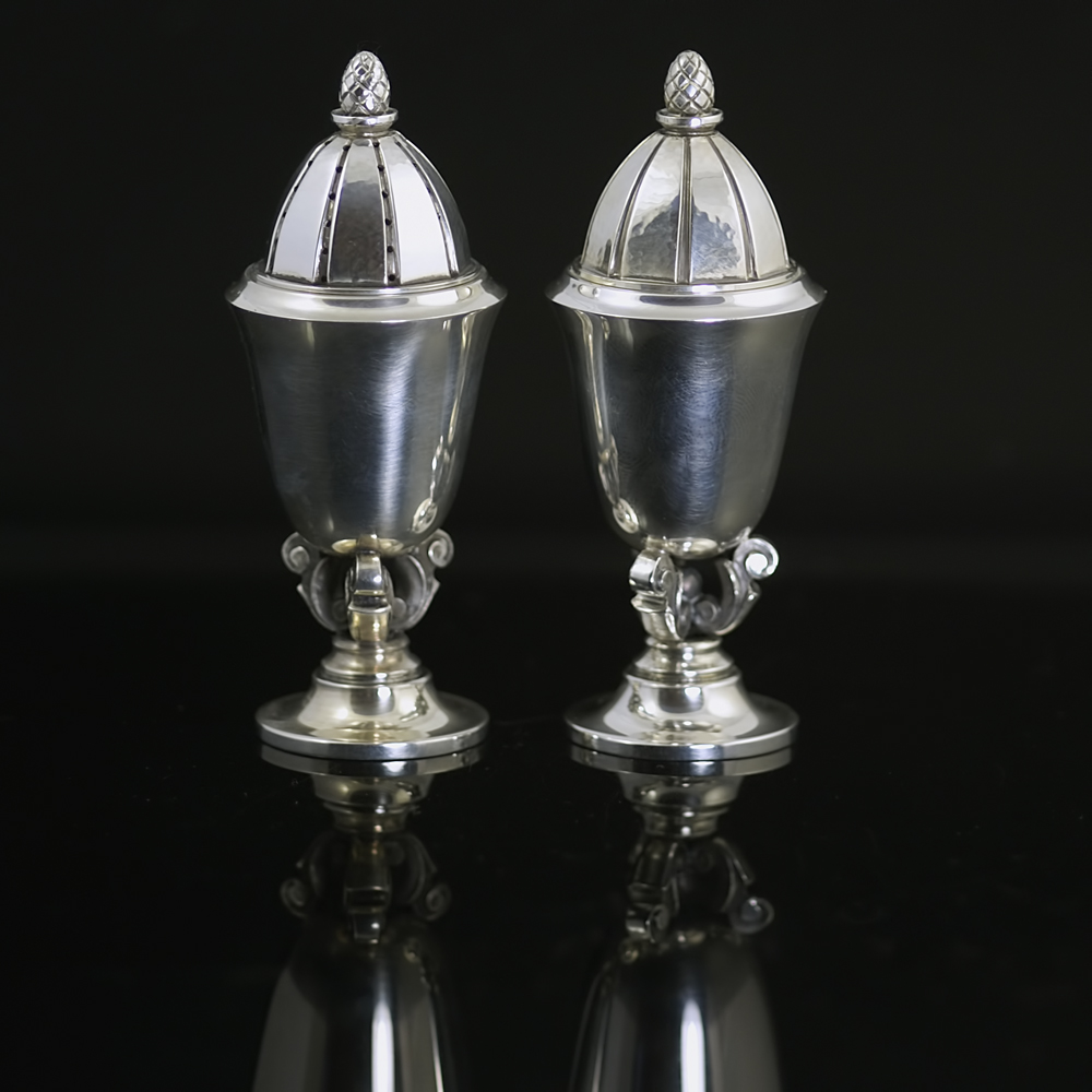 Georg Jensen. Salt og peberbøsse i Sterling Sølv. #741 - Acorn / Konge