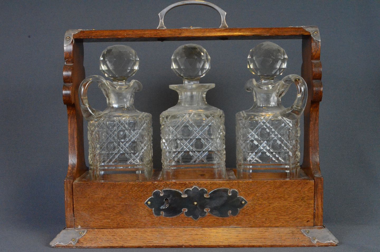 Tantalus i egetræ, beslag af sølvplet, 37x32 cm
