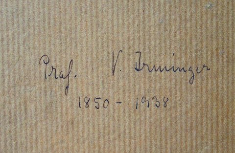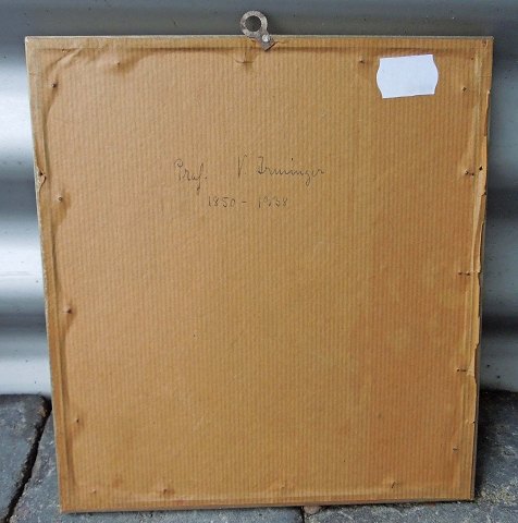 Indrammet portrættegning med blyant af *Professor V. Irminger(1850-1938). Fremstår med intakt glas og enkelte brugsspor på rammen.