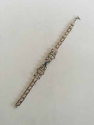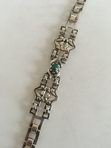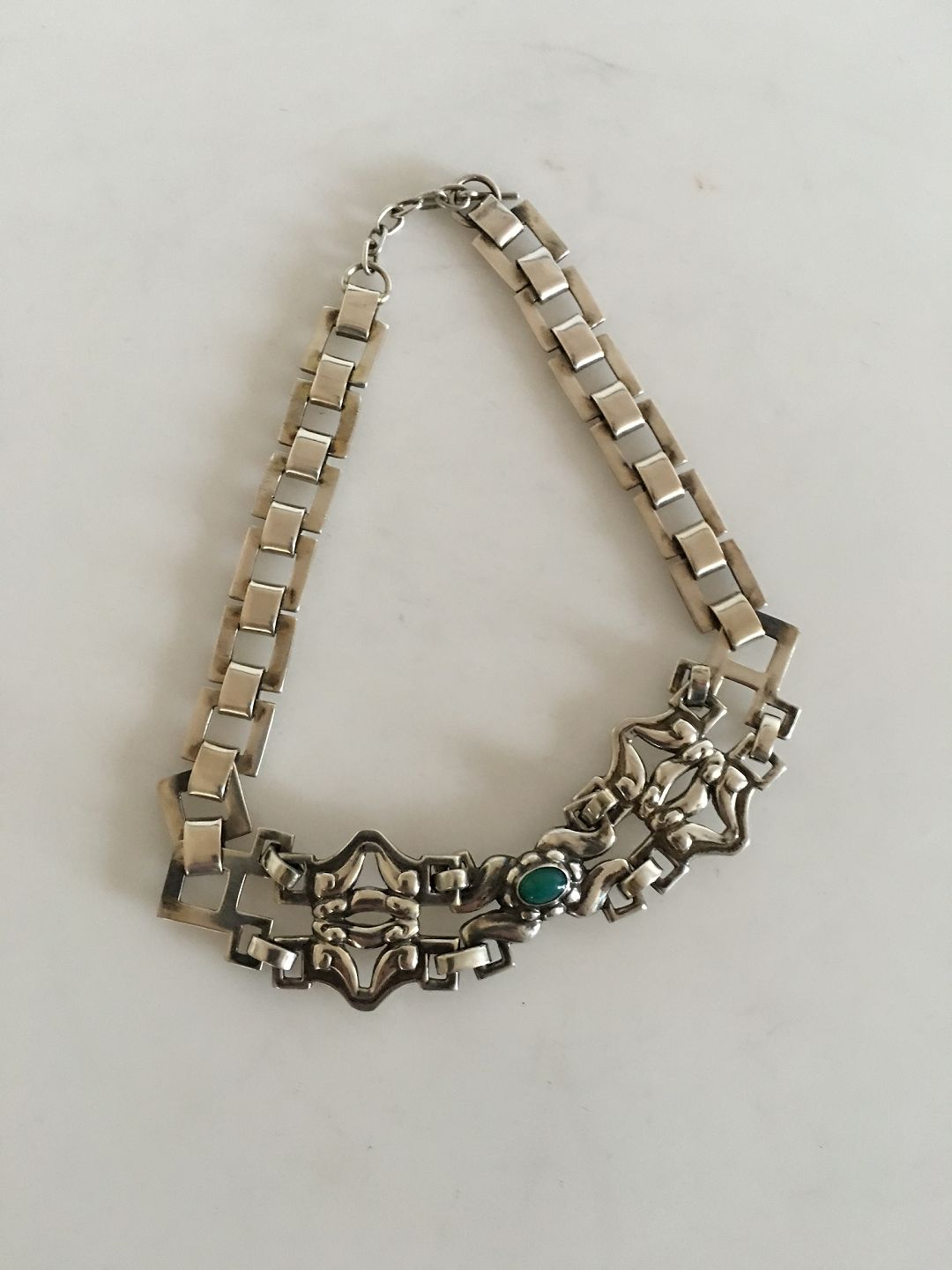 Georg Jensen Tidlig Sølv Halsbånd / Choker med Grøn Agat