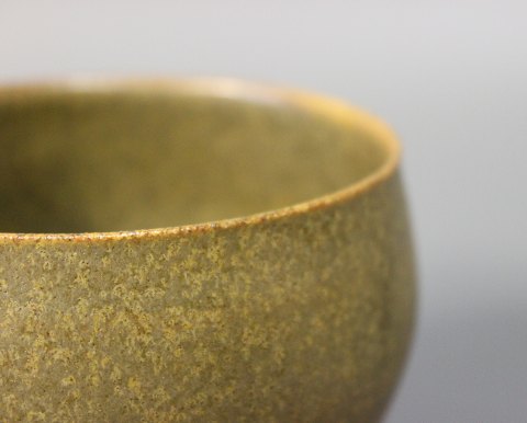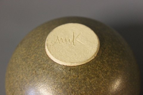 Small Ceramic bowl in green and Brown colors, stamped Ann K.