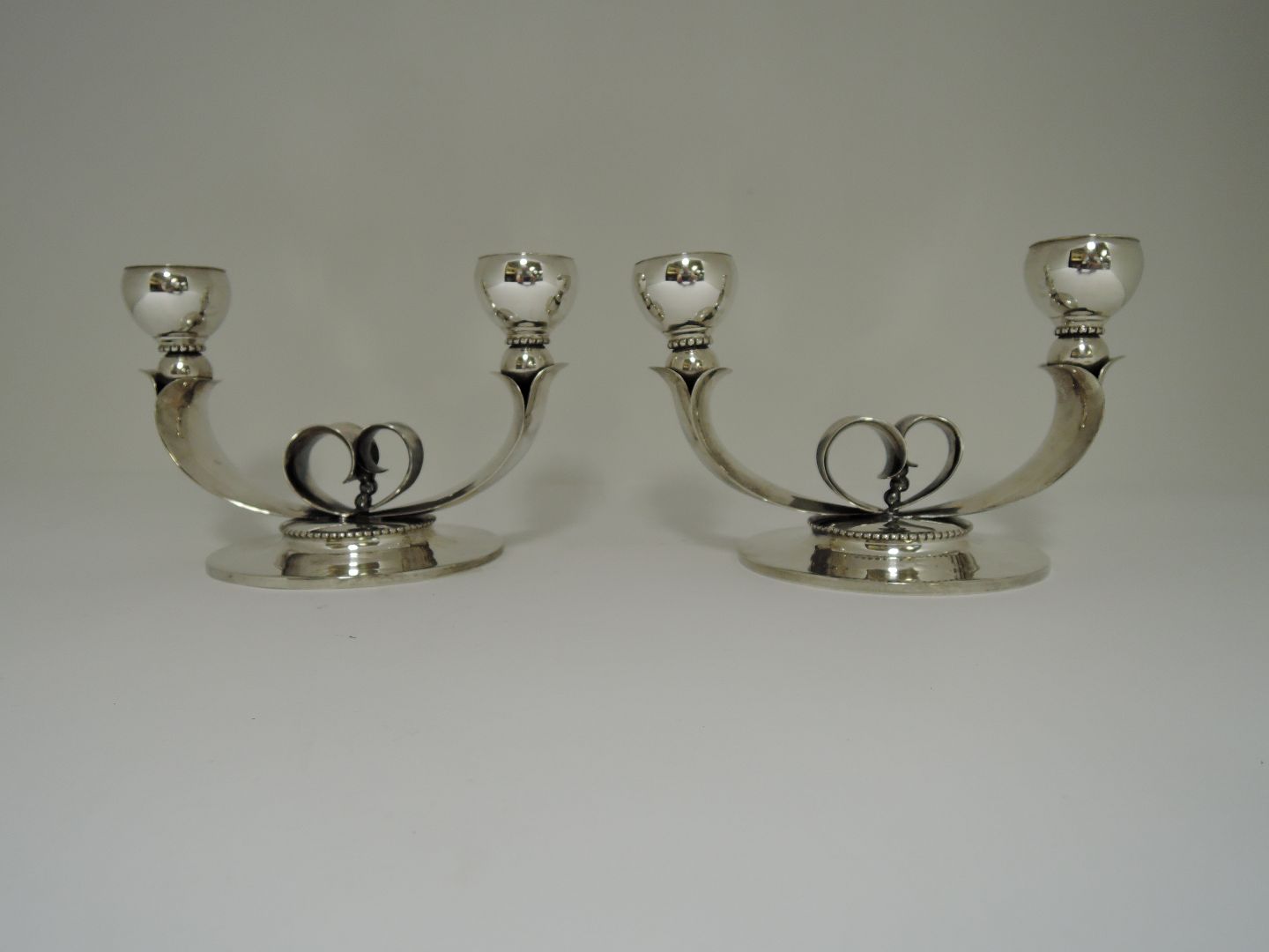 S.A.V. Lysestager. Sølv (830). Et par. Højde 11 cm. Produceret 1947