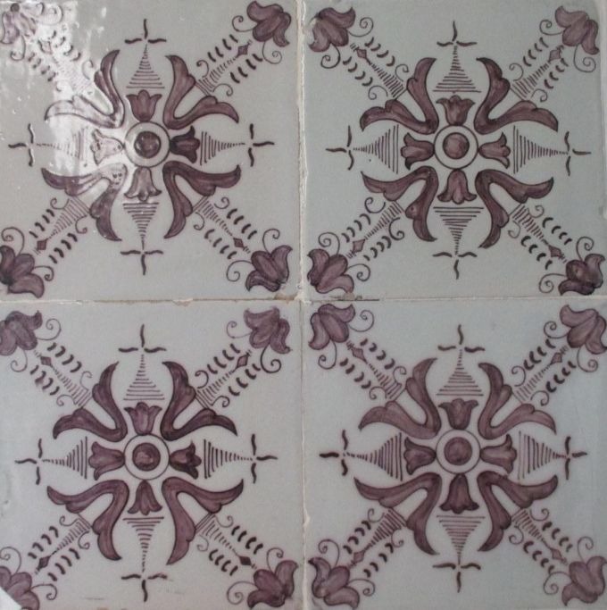 Firpas med ornament fliser, Haarlem?, Holland. Mangan farvet. 1. halvdel 17. årh. 26 x 26 cm.