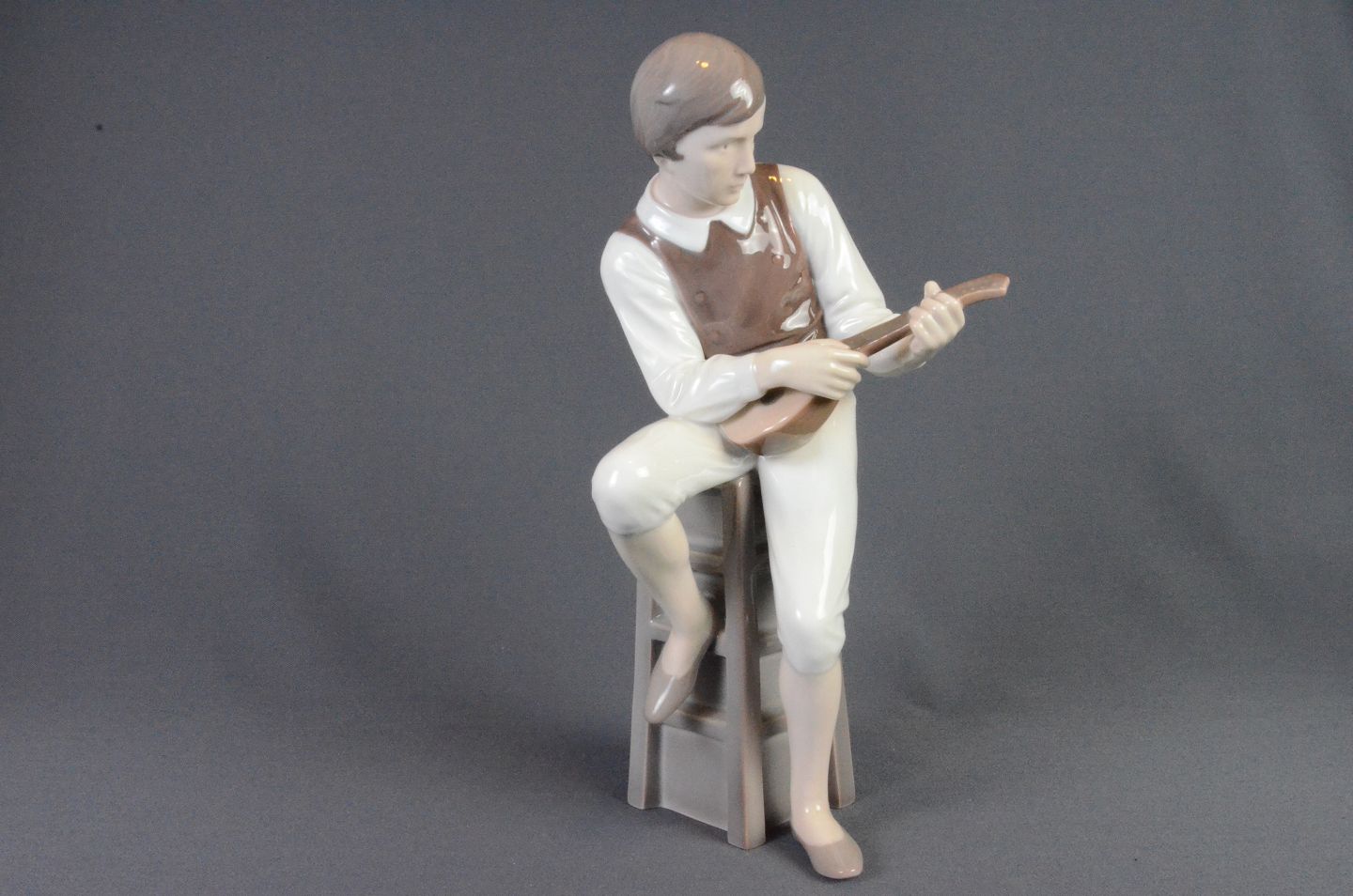 Porcelænsfigur: Bing & Grøndahl, Ung mand med citar, h: 29 cm