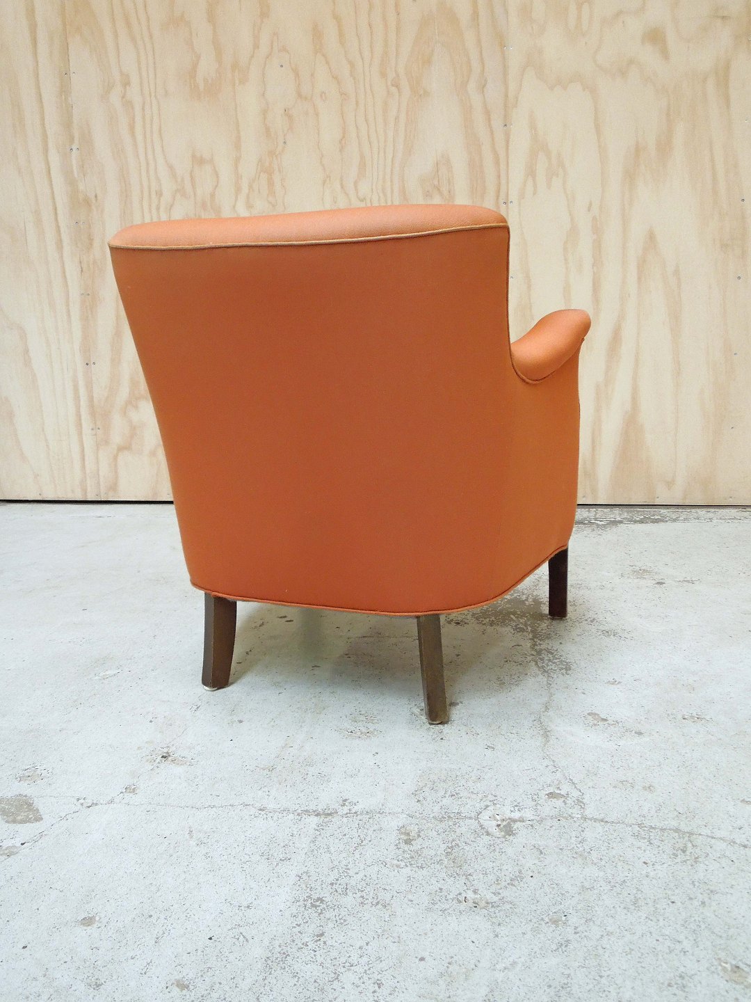 Lænestol med orange betræk.