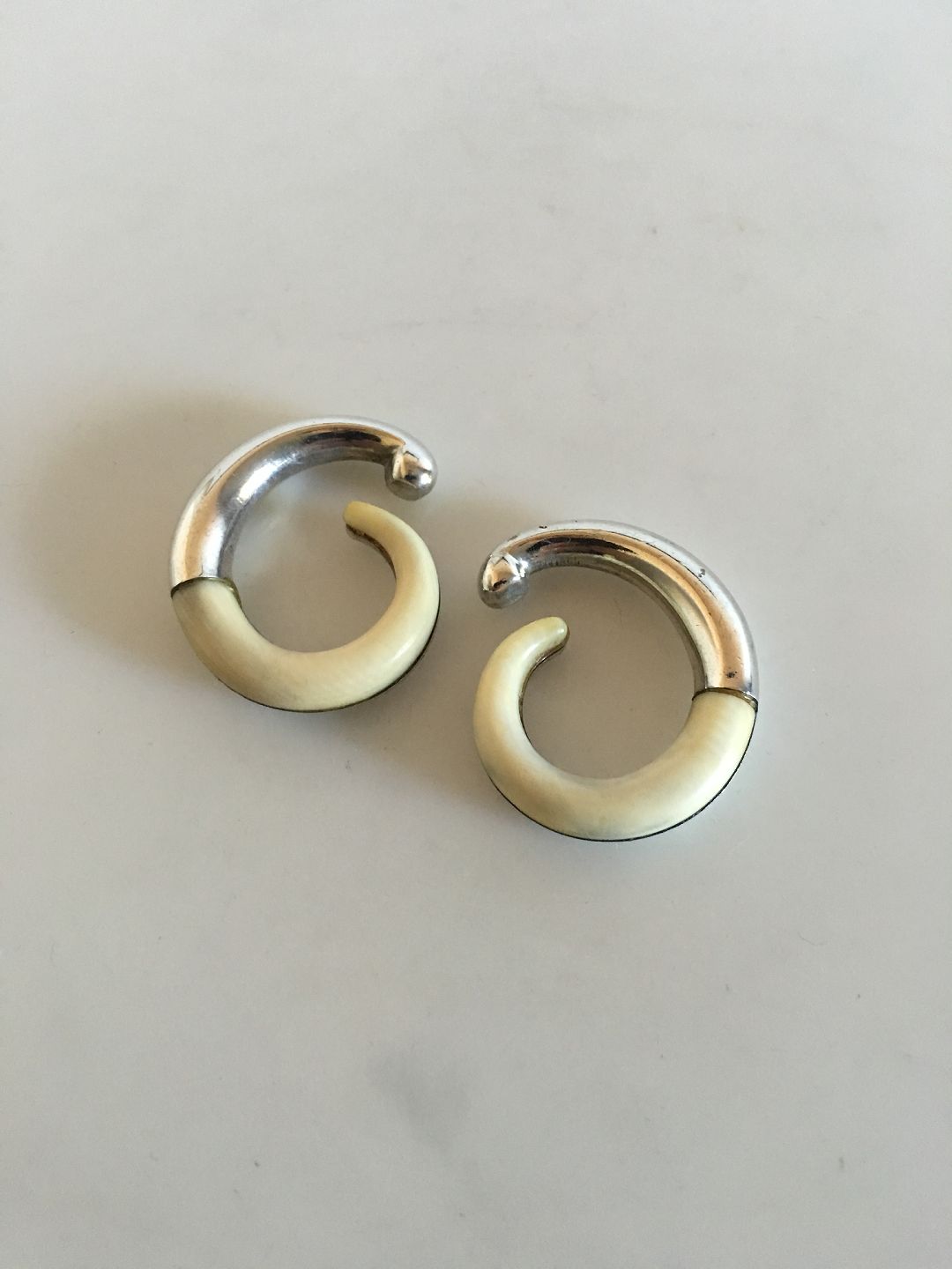 Georg Jensen Sterling Sølv Øreringe med Elfenben