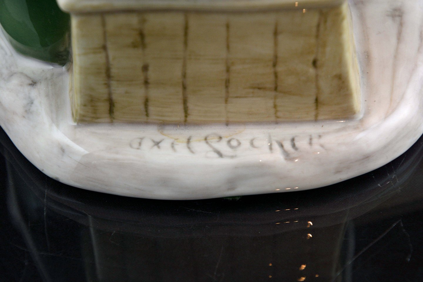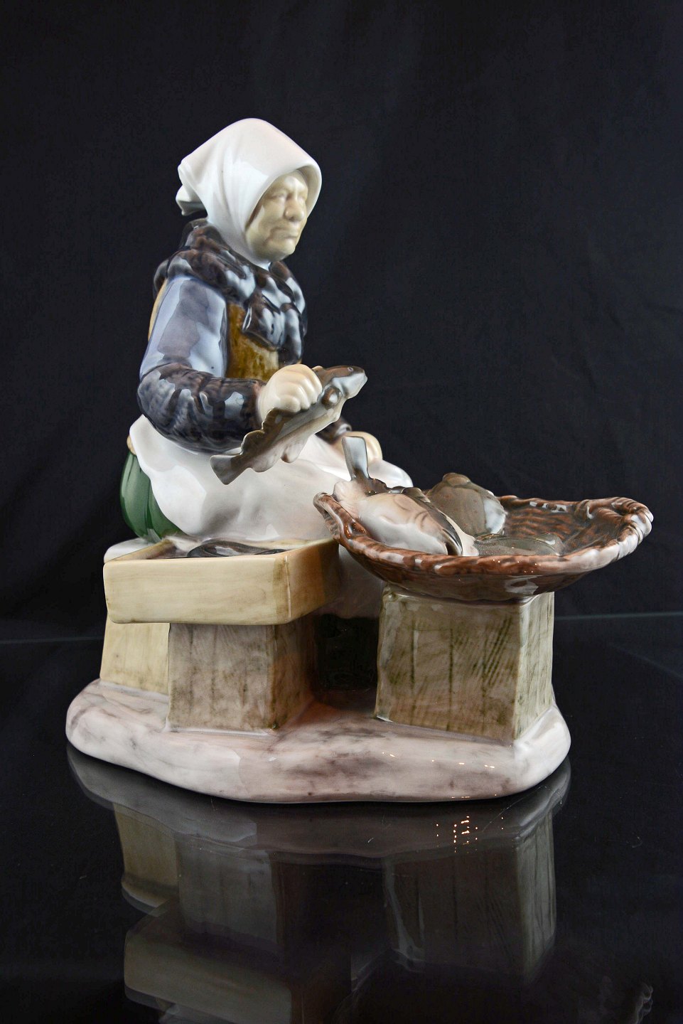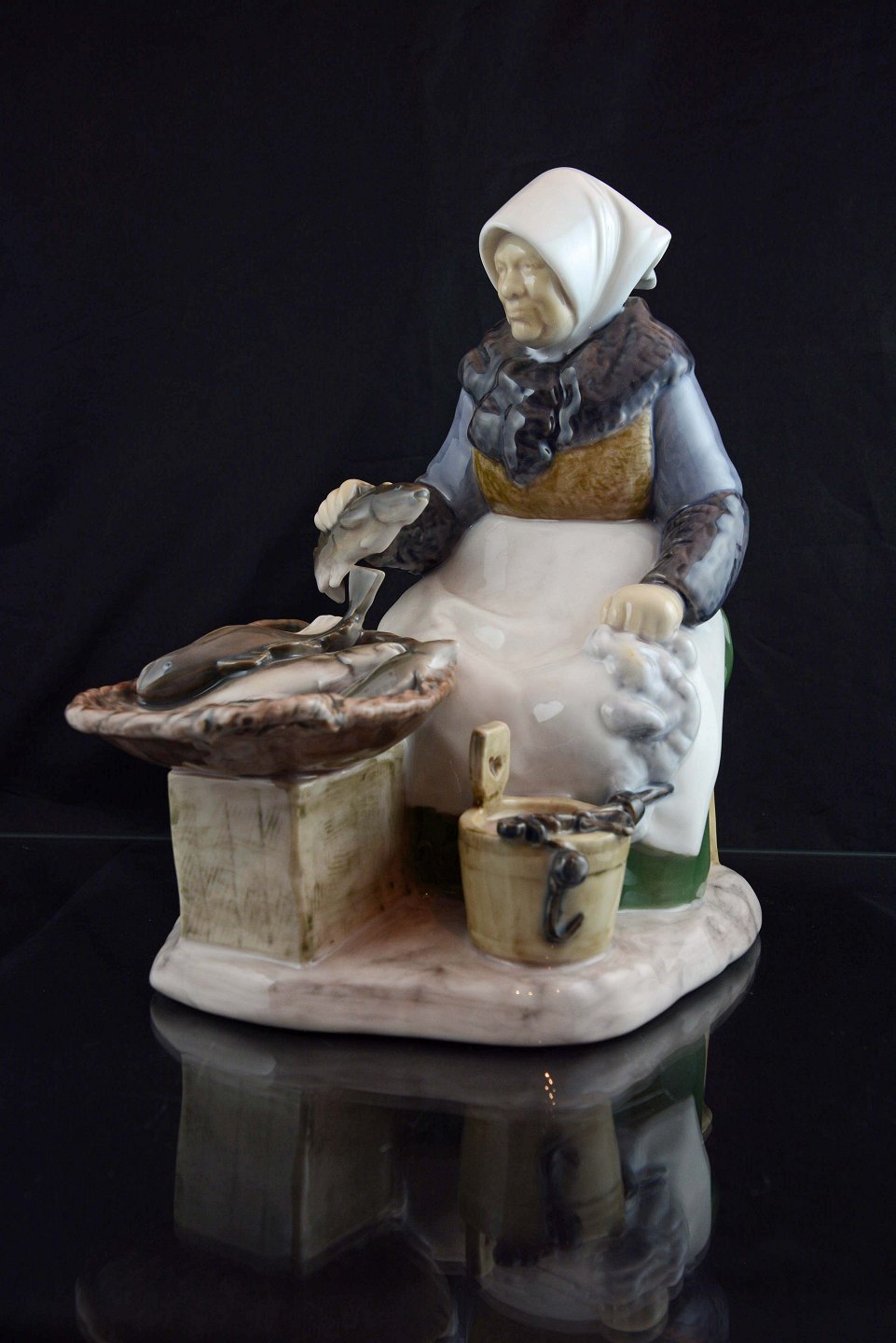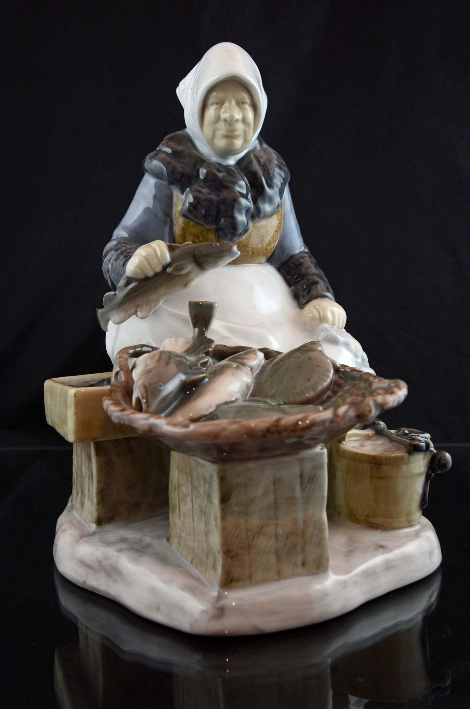 Stor porcelænsfigur af fiskerkone (nr.2233) af Axel Locher for Bing og Grøndahl. Intakt og 1. sort.