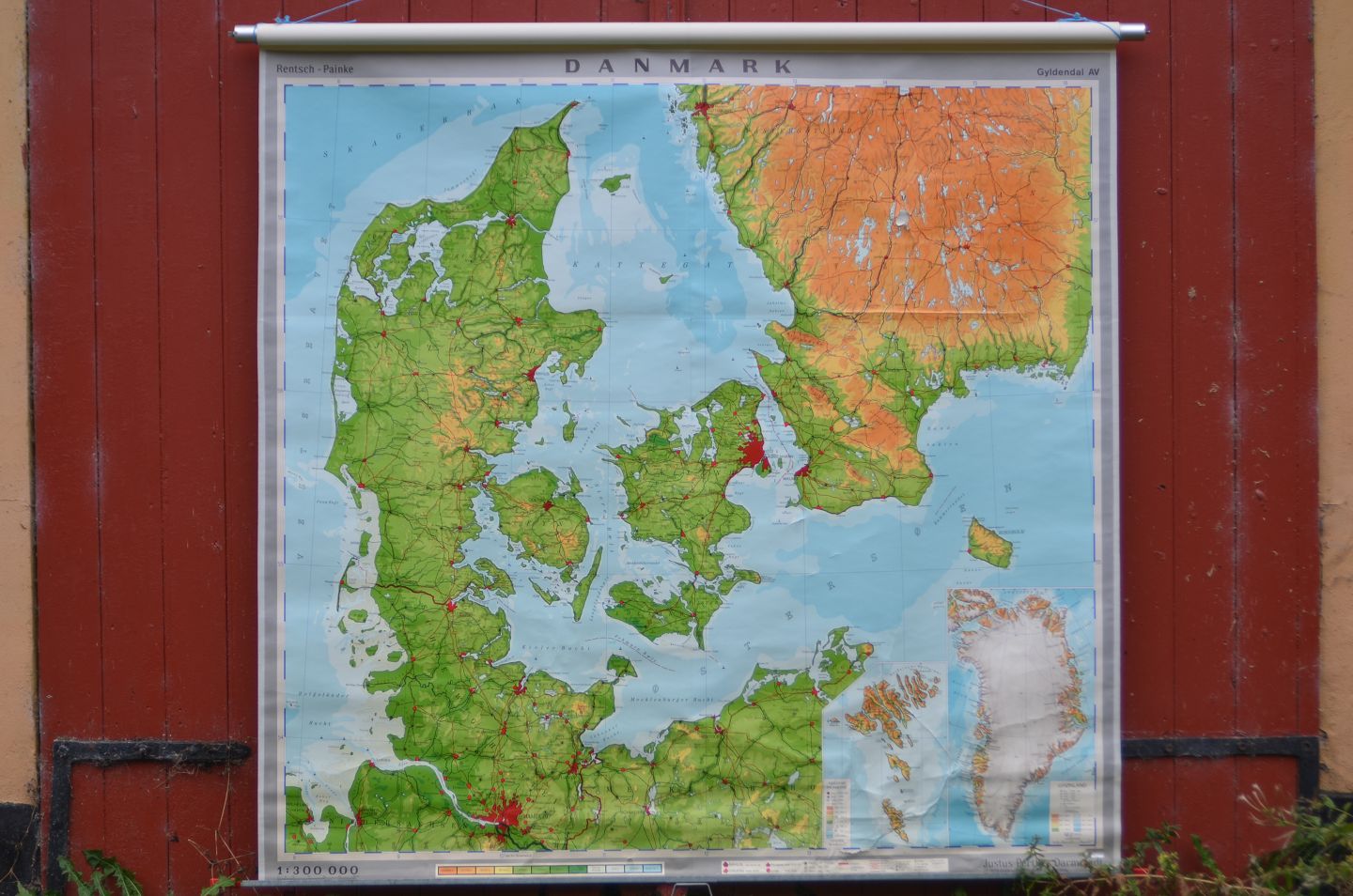 School Map: Denmark, Mounted on roller tube and with extension, Map dimensions: 180 x 180 cm