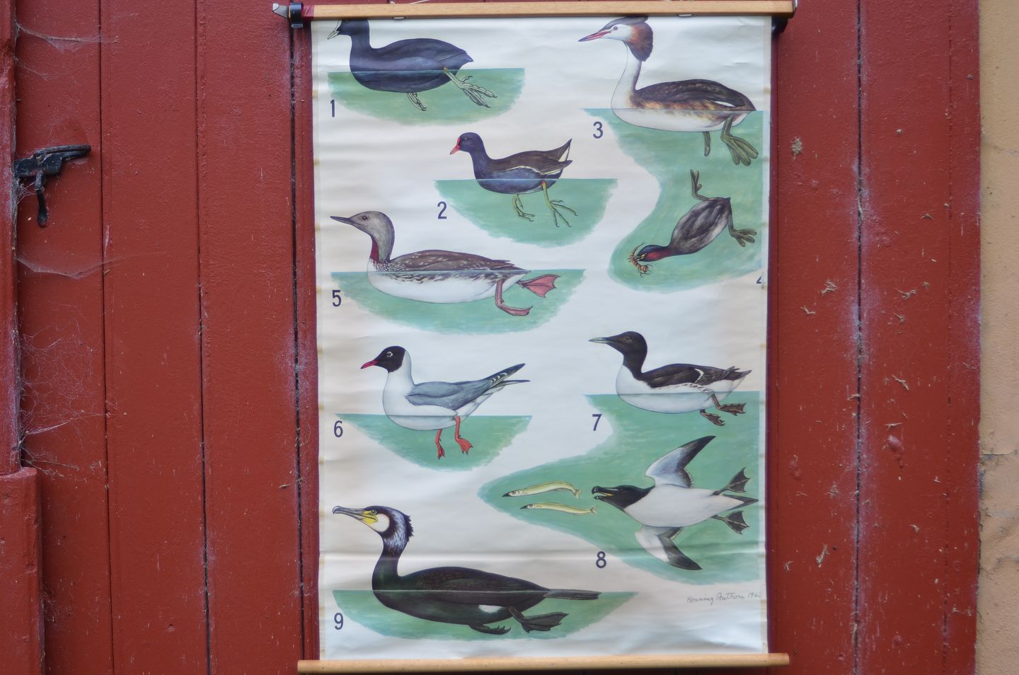 Outlook board with wooden sticks: Swimming Birds, Image dimensions: 66 x 93 cm