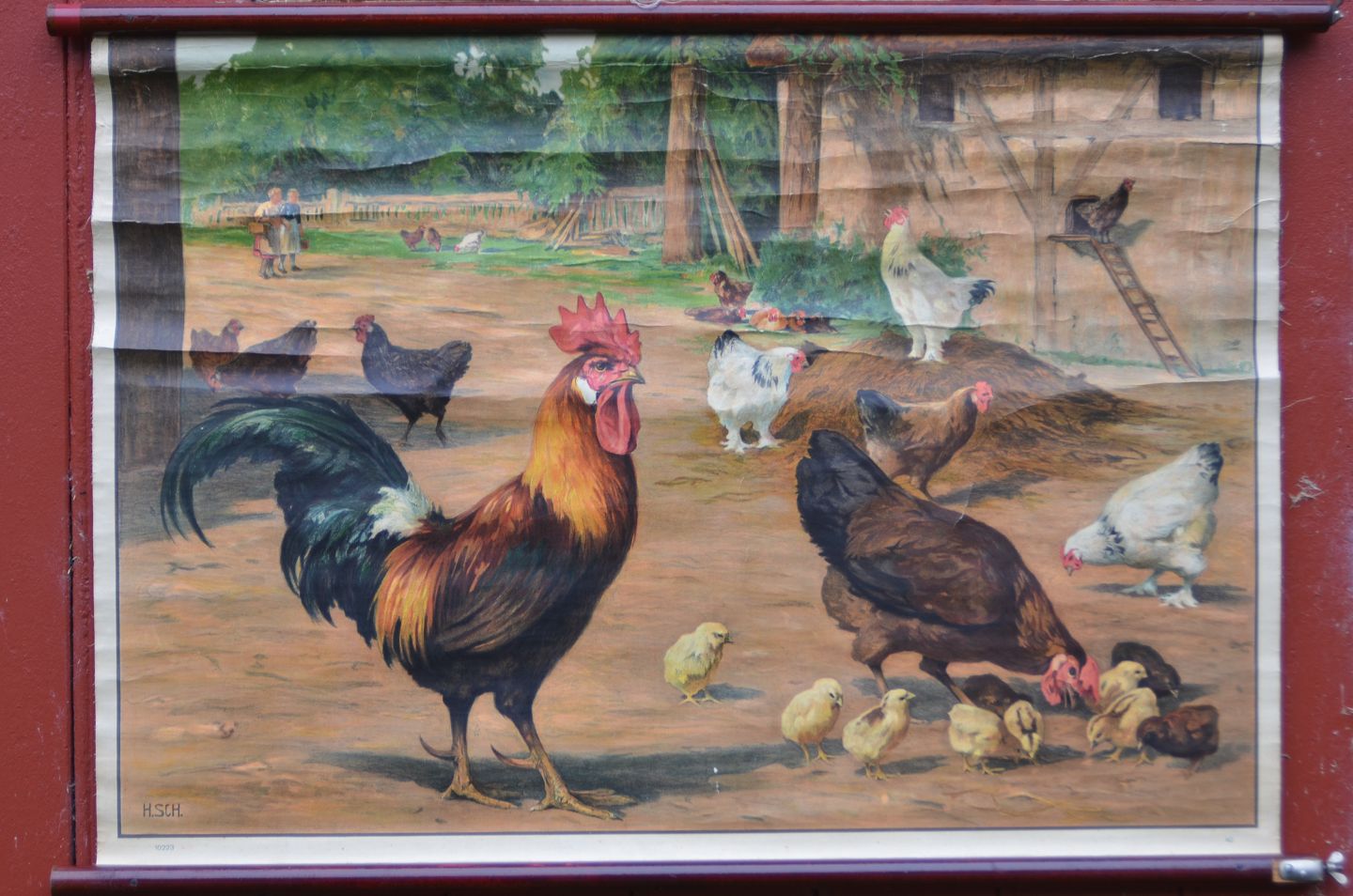 Anskuelsestavle med træstokke: Høns, Billedmål: 62 x 84 cm, (anskuelsestavle nr. 18)
