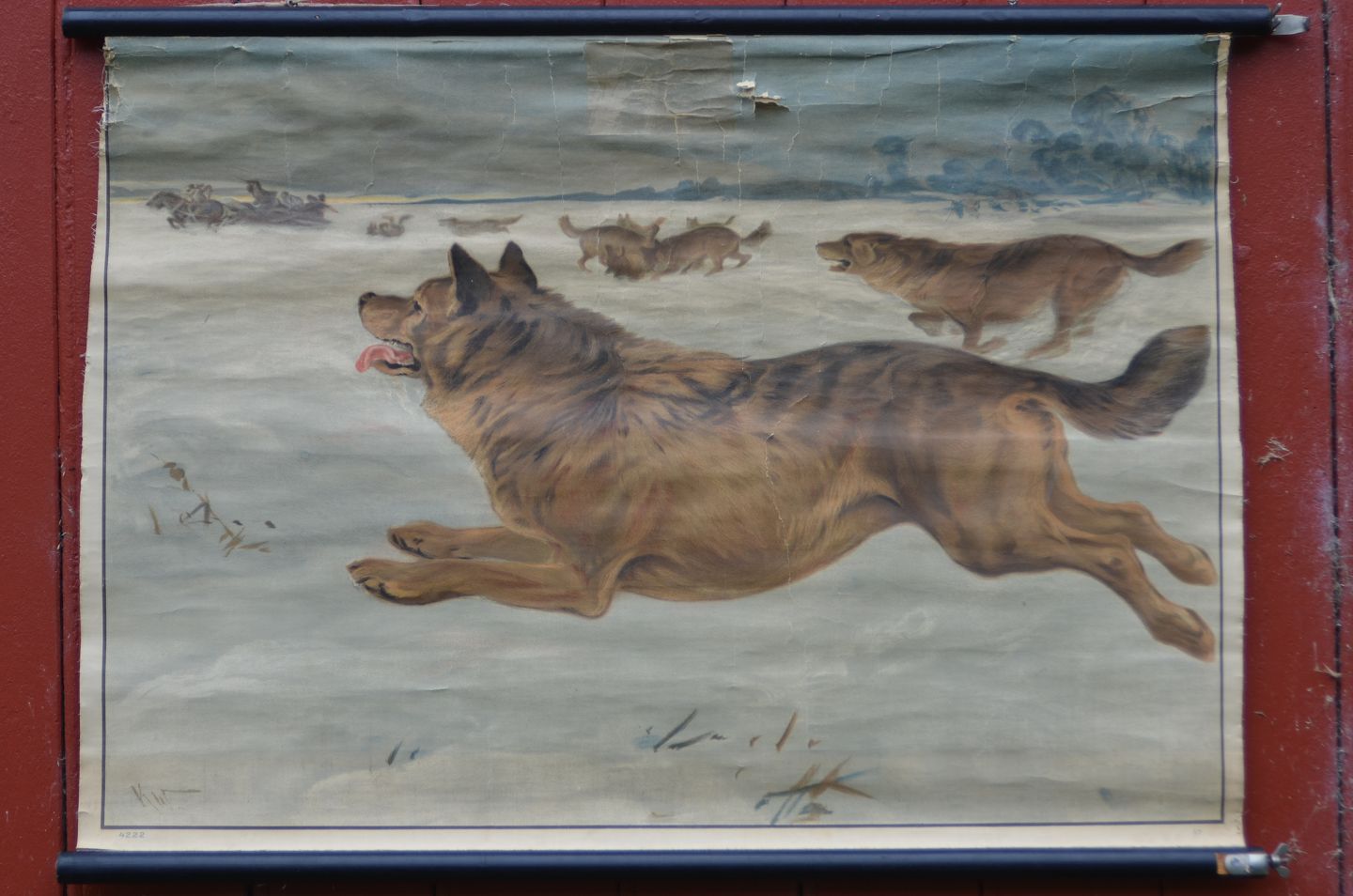 Outlook board with wooden sticks: Wolfs, Image Dimensions: 62 x 84 cm, NB hole in the canvas!