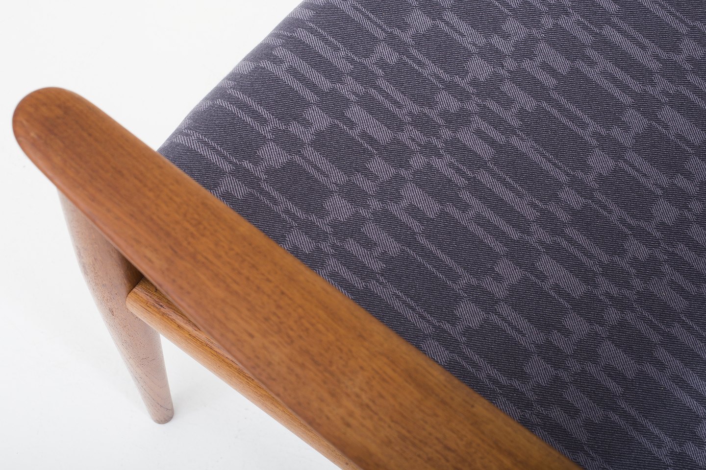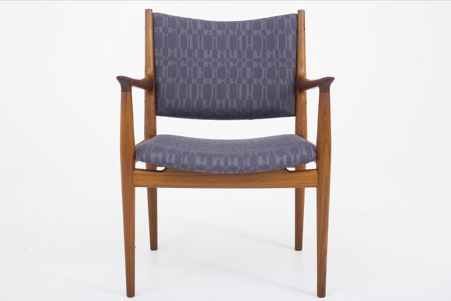 JH 513 - Nybetrukket armstol i teak med Ophlaine Carchemire Orage fra Hermés