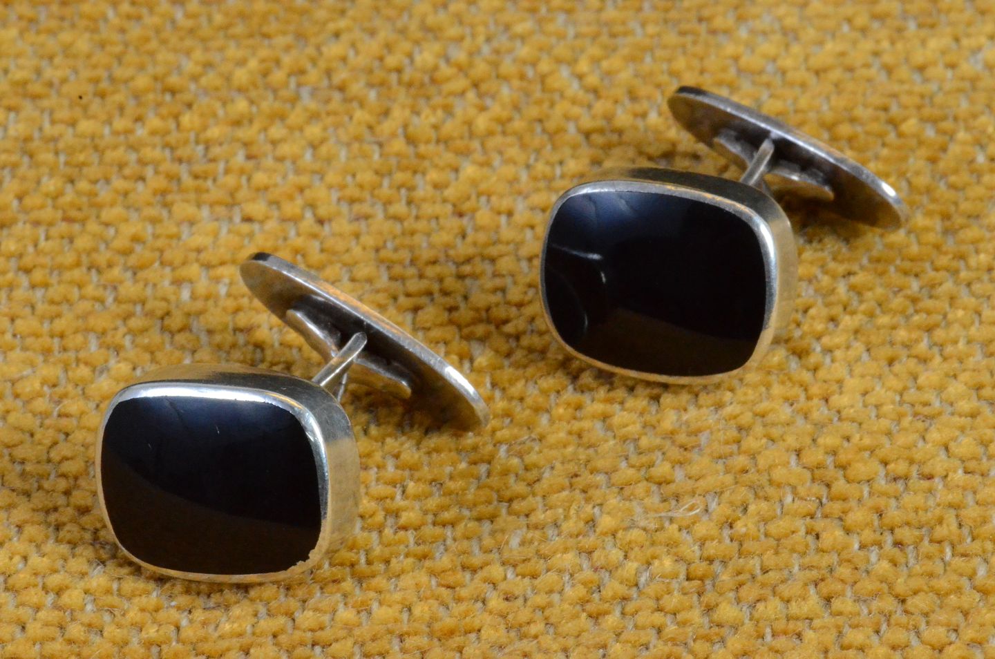 Manchetknapper med onyx. Stemplet 925S HFH (.Hans Fr. C. Holm - Hobro 1944 - 1992) Str.: 1,5*1,3 cm. Art. No. 100