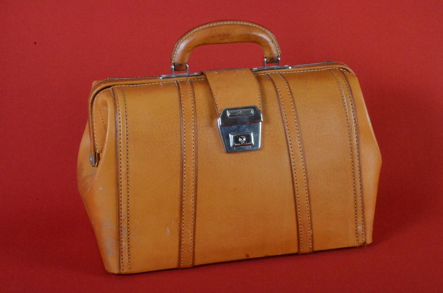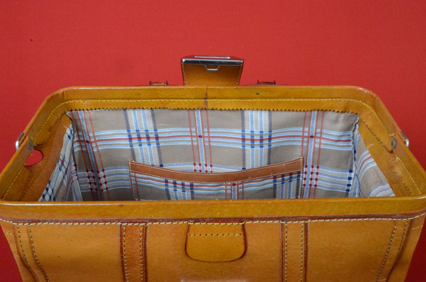 Briefcase of leather and fabric, h: 24 cm, l: 37 cm