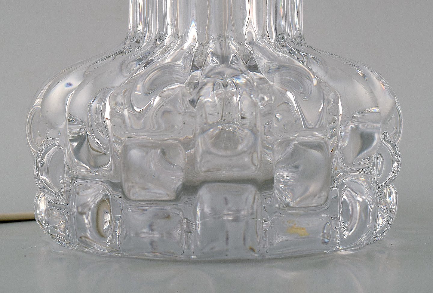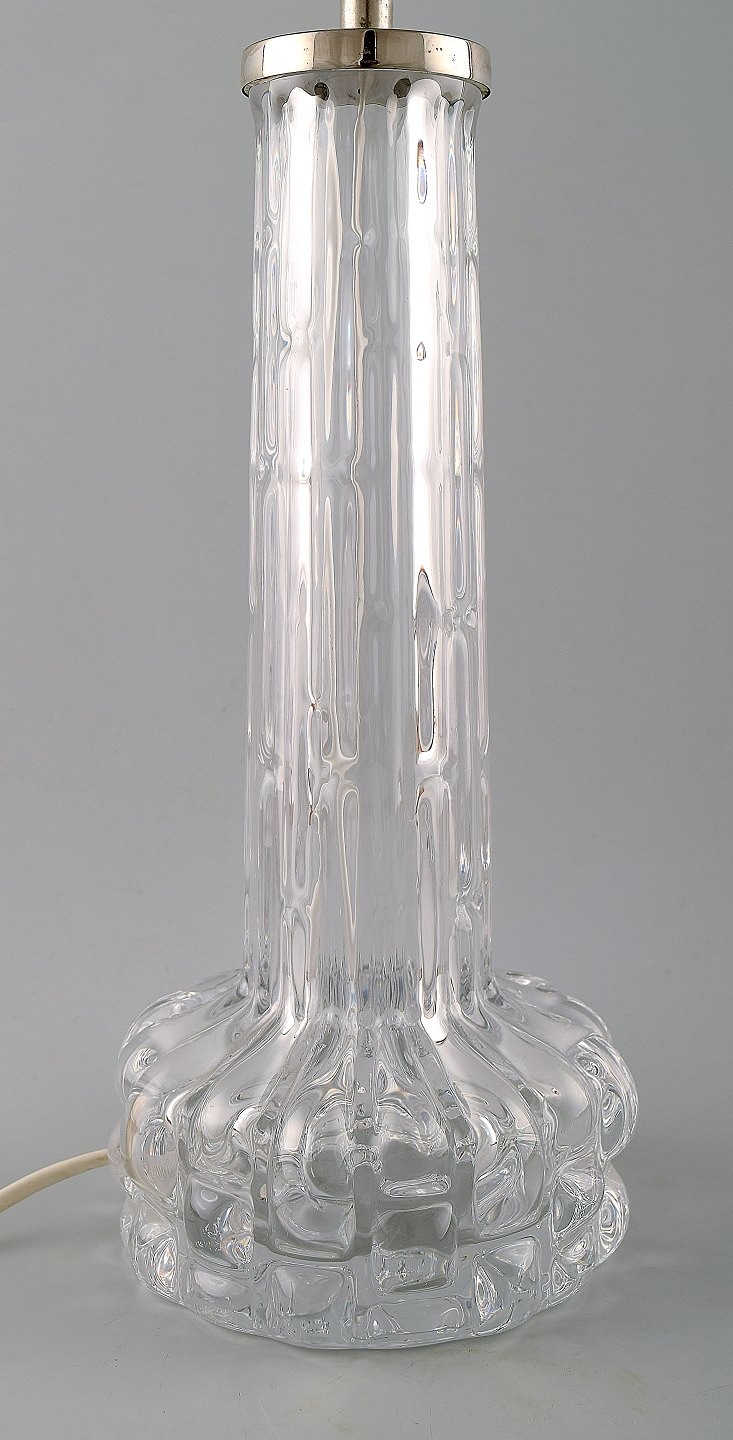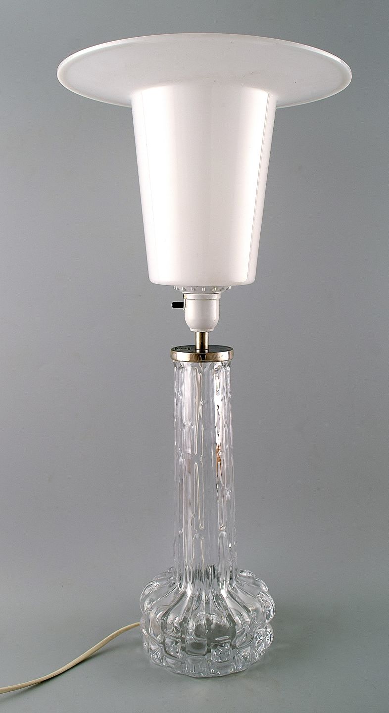 Carl Fagerlund for Orrefors bordlampe i kunstglas med stor skærm i hård plast.