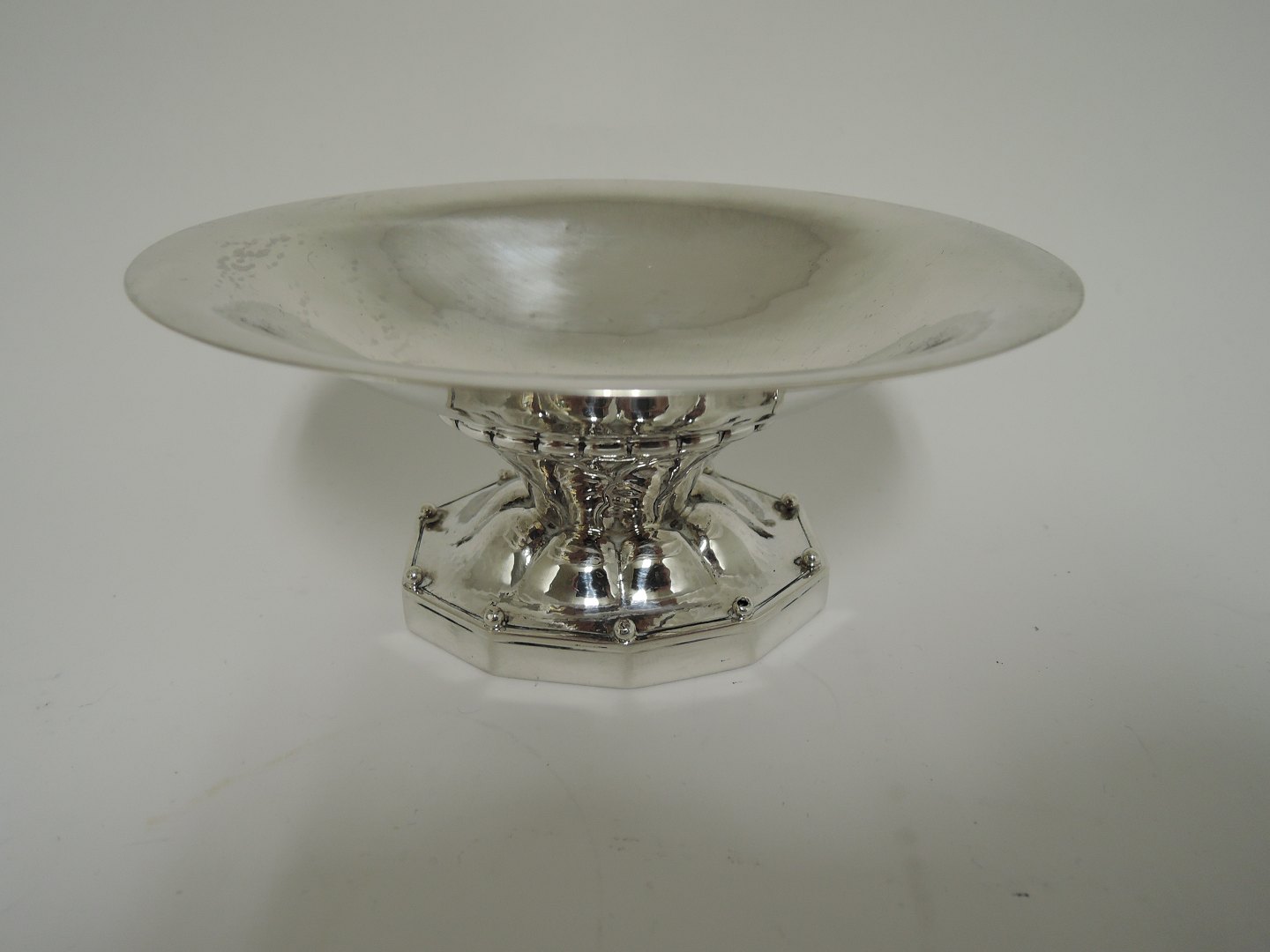 Georg Jensen. Sterling (925). Oval skål på fod. Design 42. Højde 5 cm. Længde 11,5 cm. Produceret 1915 - 1930.