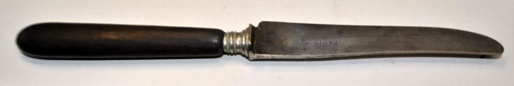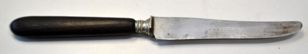 En æske med 12 knive med benskæfter. Blade i jern. Stemplet. Frankrig, 19. årh. L.: 21 cm.