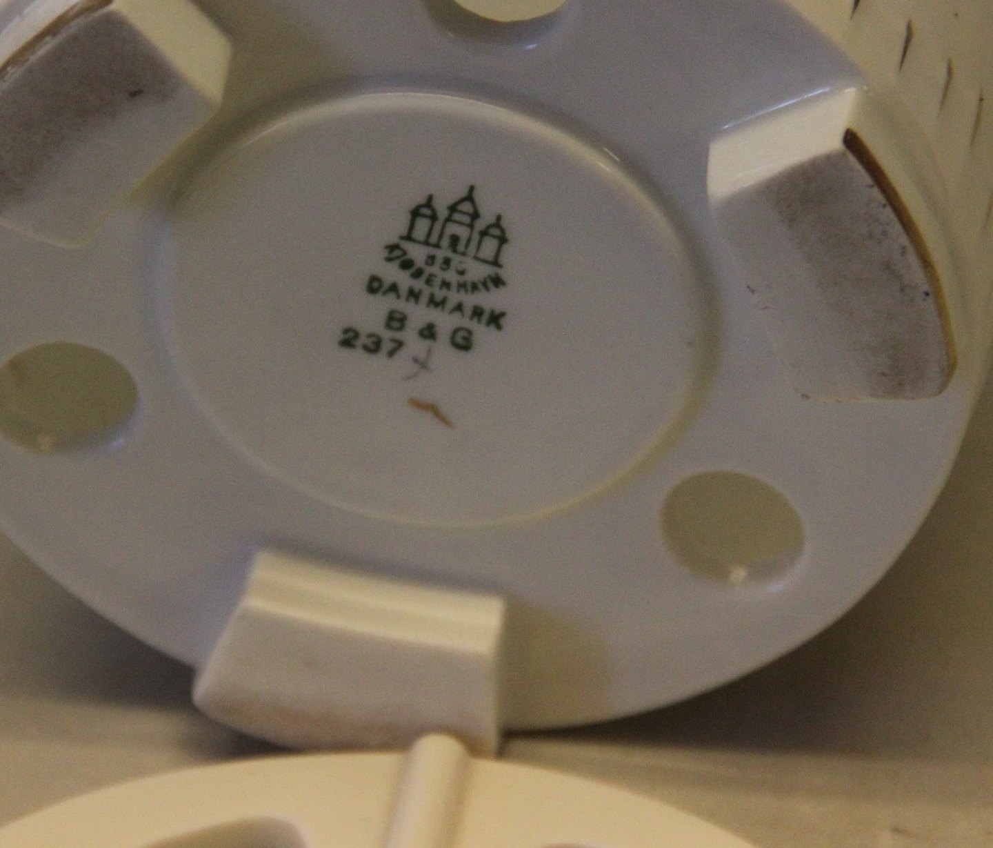 237 Fyrfad H: 8 cm x 11 cm porcelænsplade Bing & Grøndahl Erantis I fin og hel stand Tevarmer
