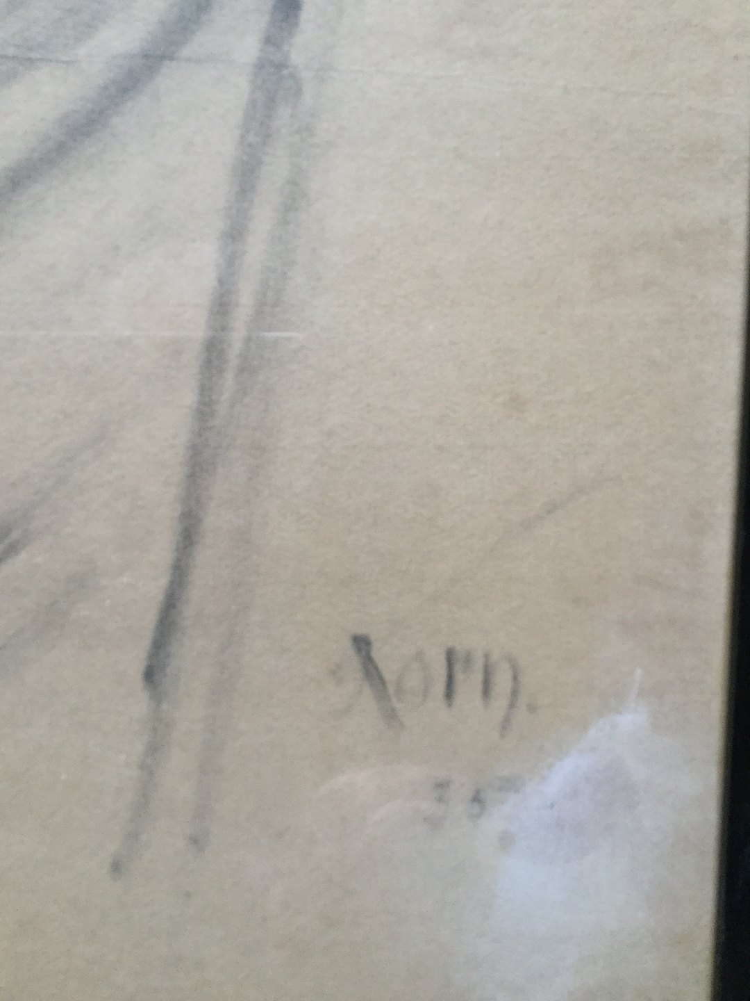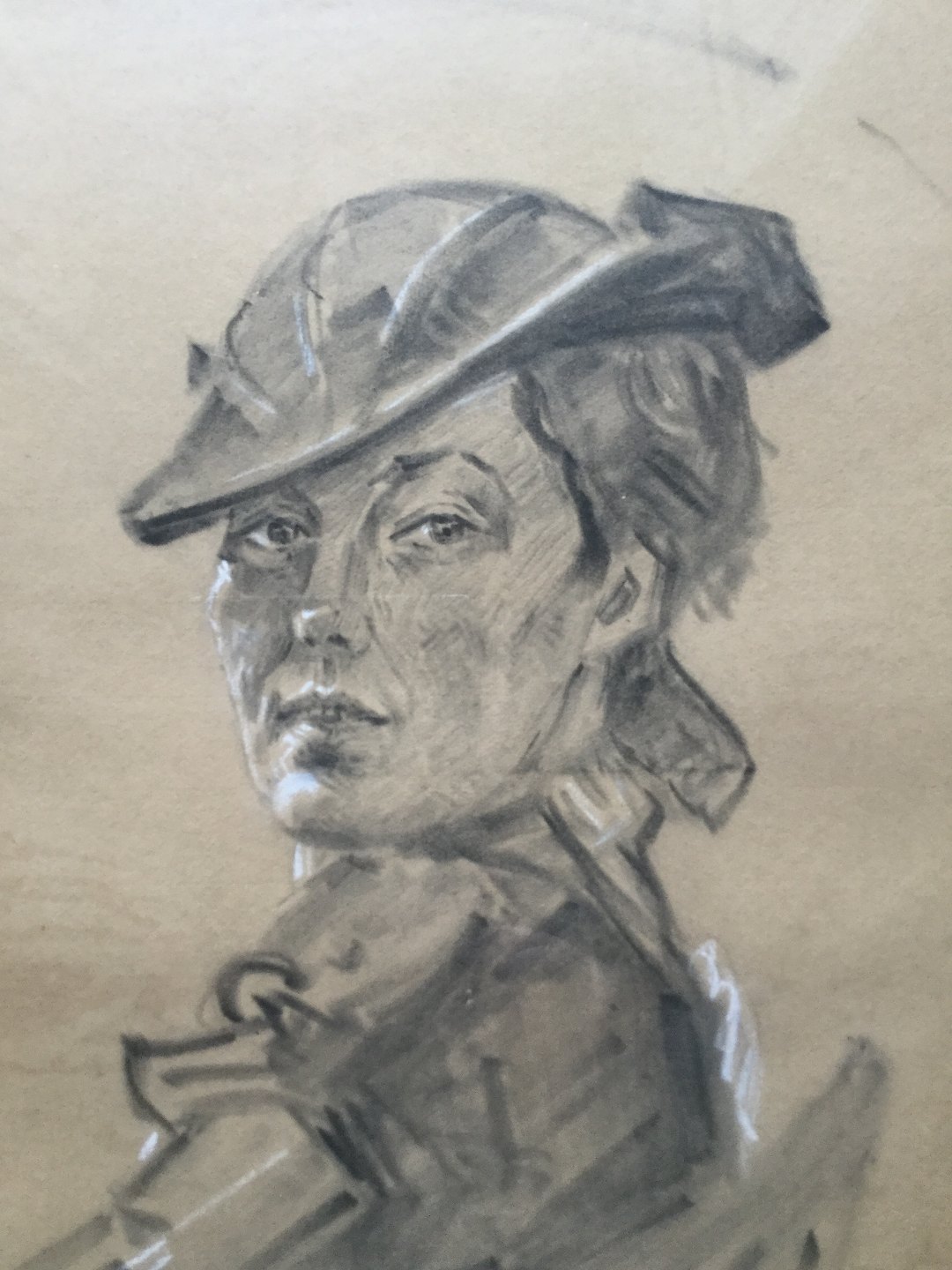 Tegning af H.J. Korn 1935 - Siddende kvinde i ridedress.