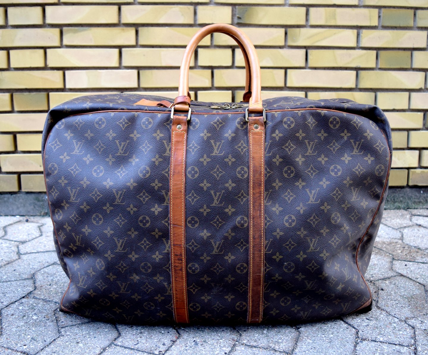 Louis Vuitton: "Alize" rejsetaske af monogram kanvas med to læderhanke, lyse læderbesætninger, aftageligt navneskilt af lys kernelæder, messingbeslag, et stort lynlåsrum med indvendige elastikstropper.