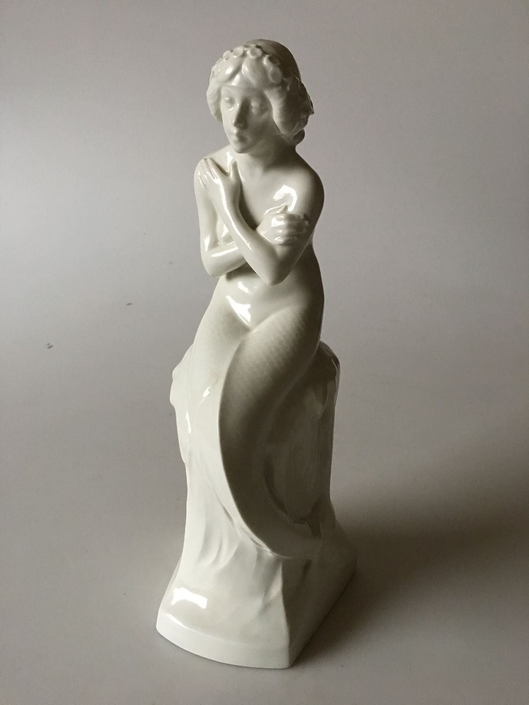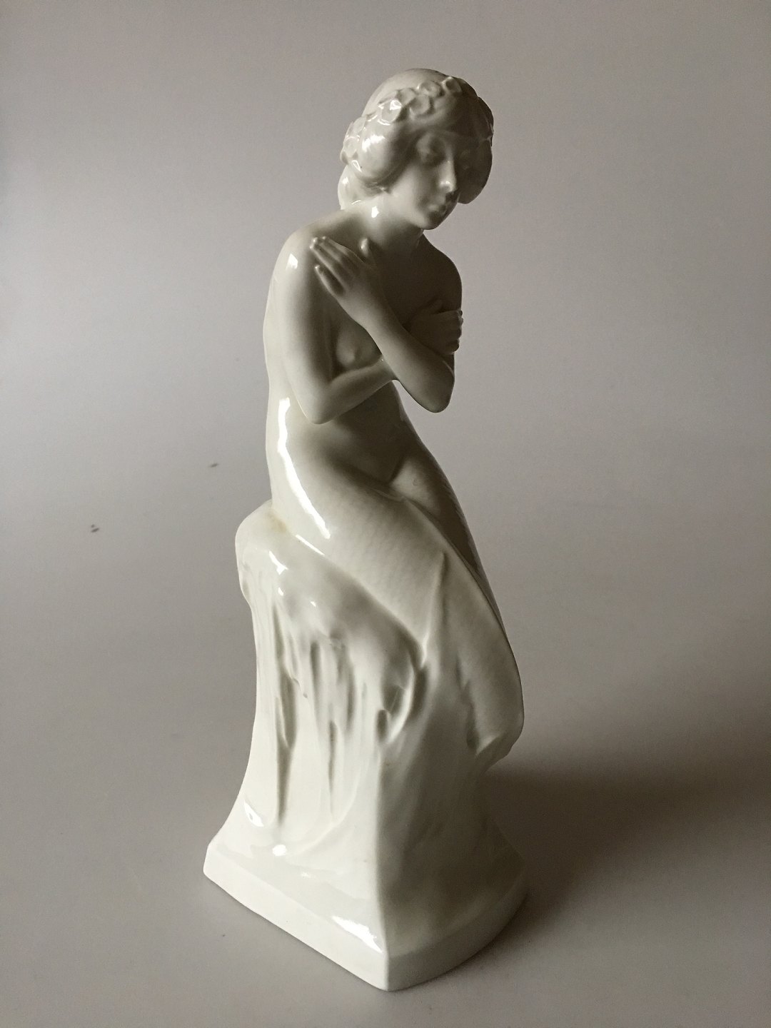 Royal Copenhagen Havfrue på Is pedestal, hvid No 1210. Designet af Christian Thomsen. 1. Sort. I perfekt stand. 26 x 10 cm.