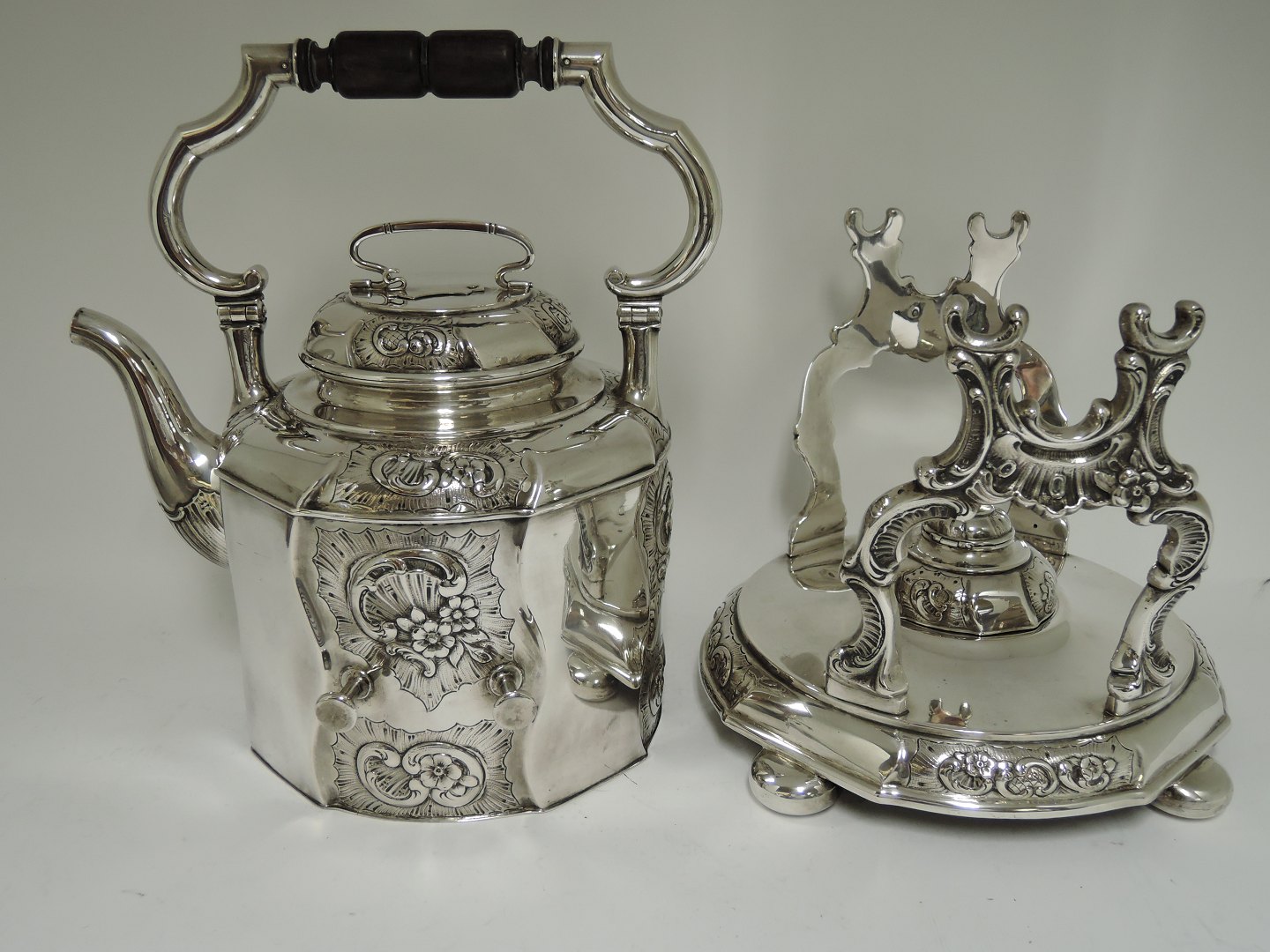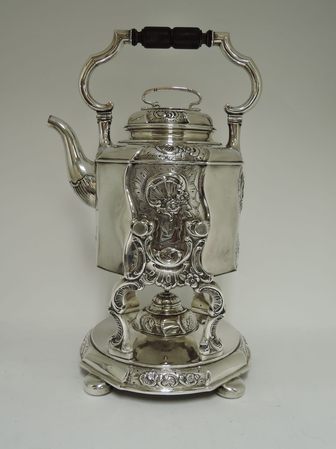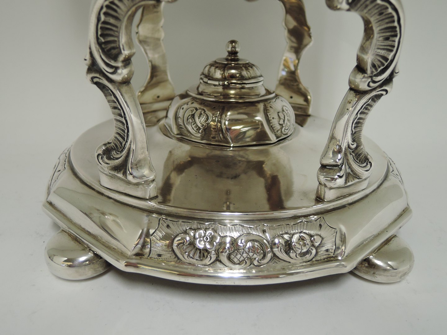 Rosenborg. Sølv (830). Svingthekande med brænder. Højde 30 cm. Produceret 1913.