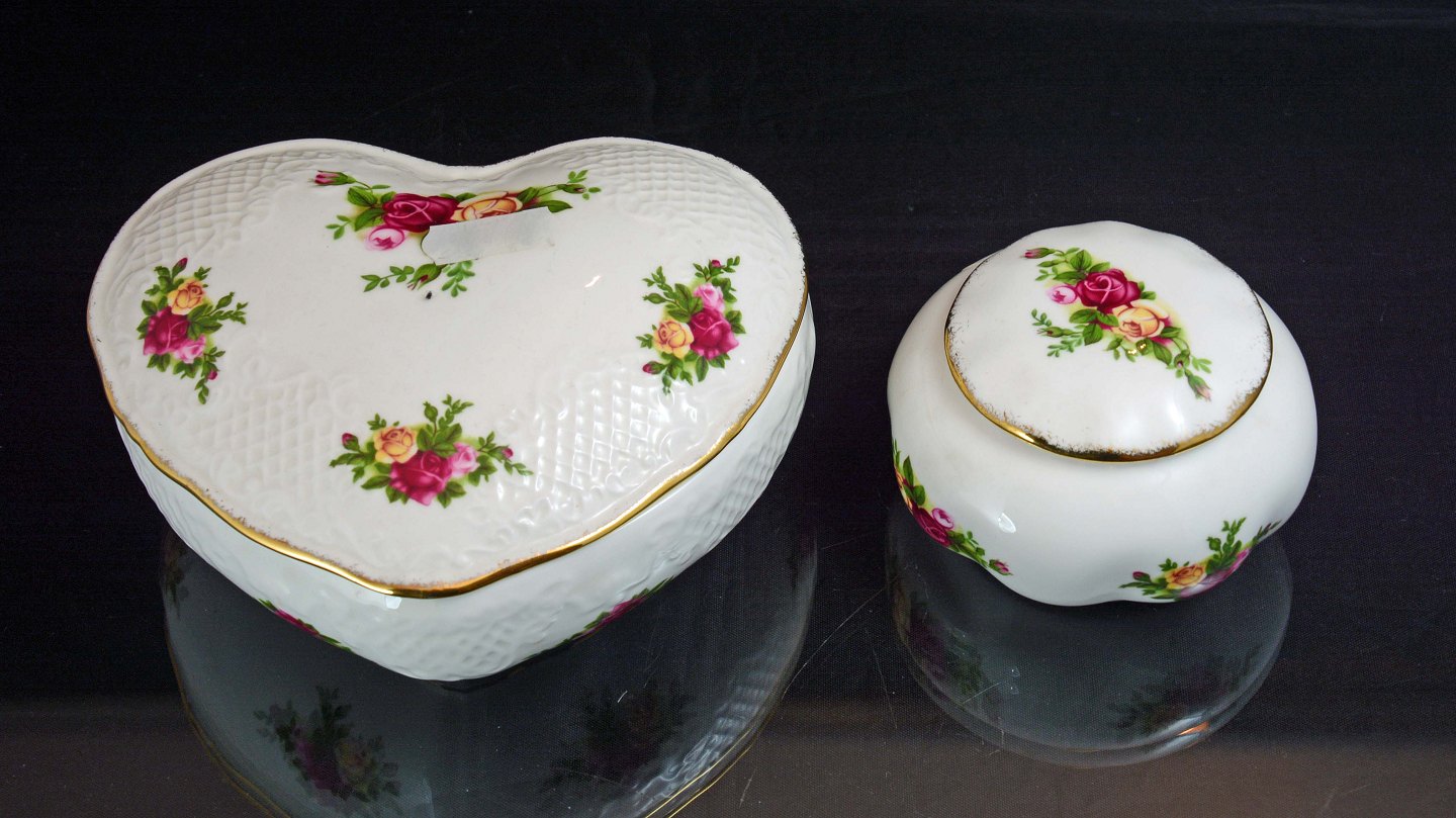 Hjerteformet krukke med låg: H. ca. 6.5 cm., B. ca. 13.5 cm., D. ca. 10.5 cm. Pris: 450 kr. solgt
