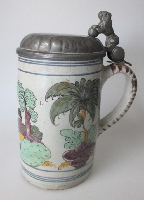 Tysk fajance øl krus, 18. årh.
