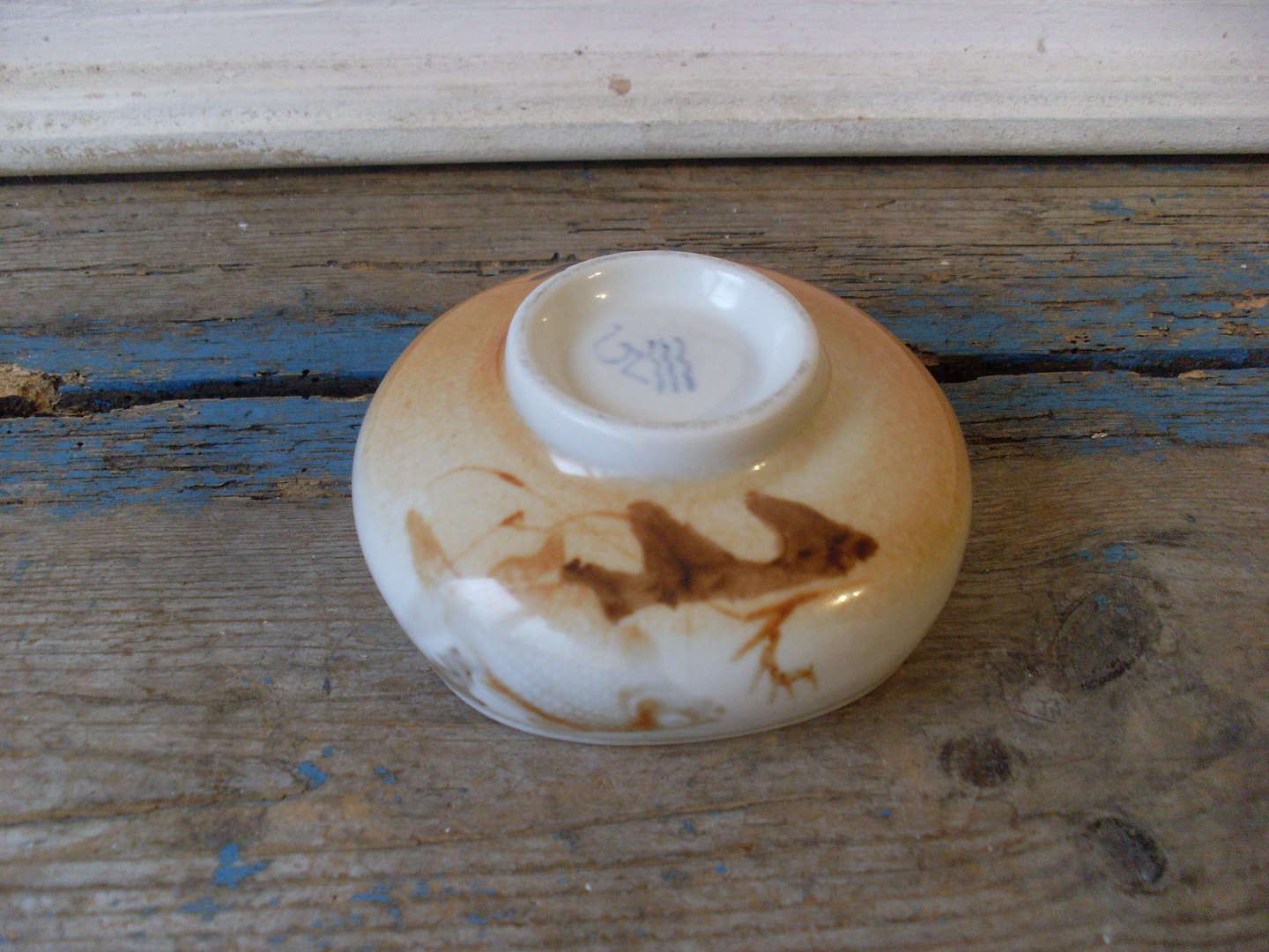 Niels Thorsson for Royal Copenhagen unika skål, dekoreret med håndmalede fisk i rød jernglasur.