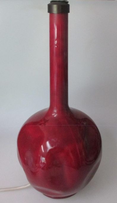 Rørstrand ceramic lamp, 20th century. Sweden. Ox Blood colored glaze with decorations. H .: 36.5 cm. Stamped.