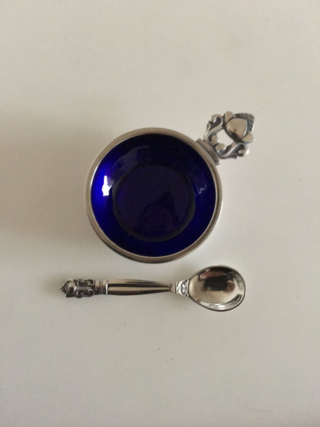 Georg Jensen Konge Sterling Sølv Emaljeret Saltkar No 62 med Saltske