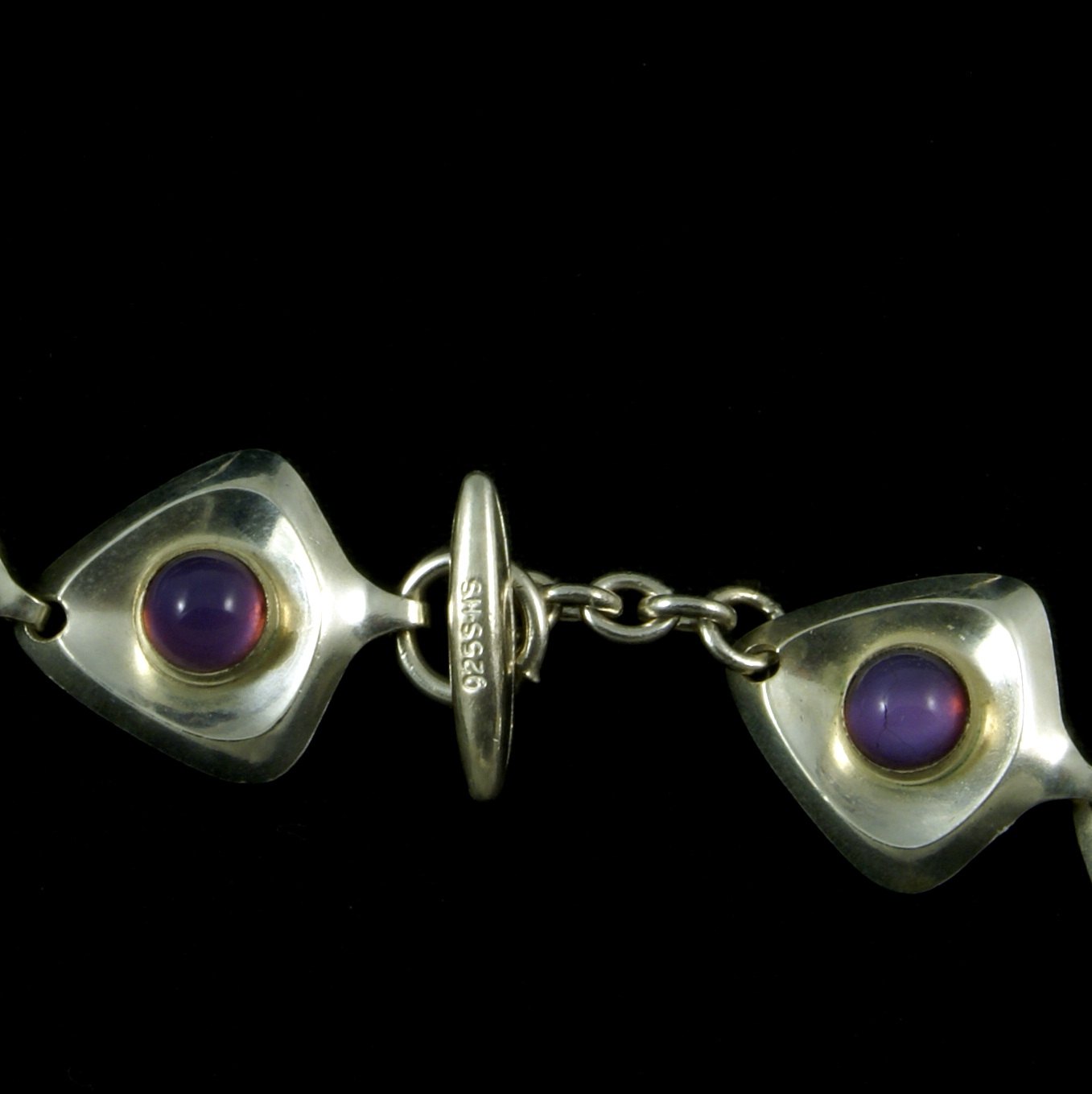 Hermann Siersbøl. Halskæde i Sterling Sølv med ametyst. 1960erne