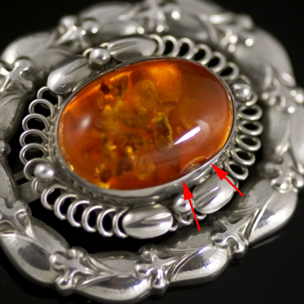 Georg Jensen Broche i Sterling Sølv med rav #109