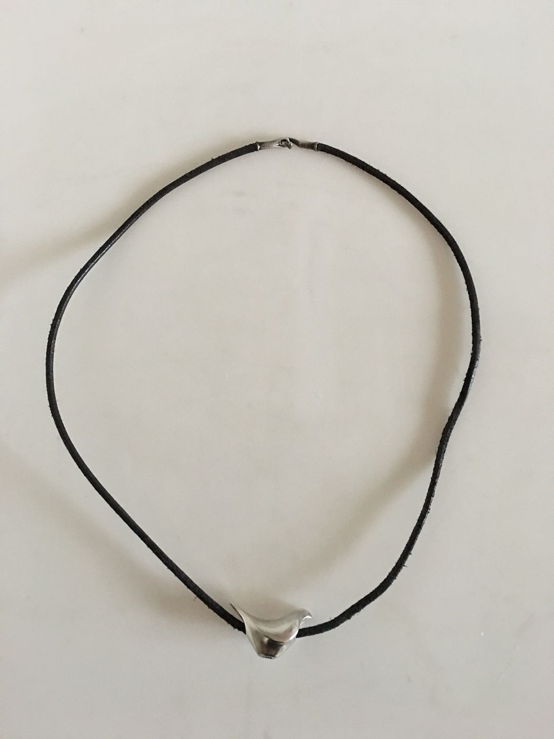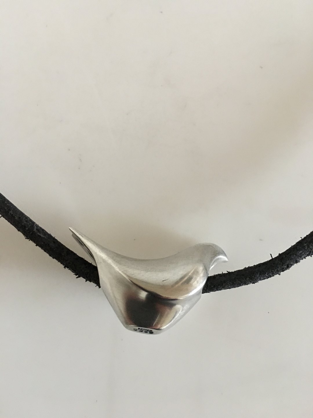 Hans Hansen Halskæde Bestående af Lædersnor og Sterling Sølv Vedhæng formet som en Due.