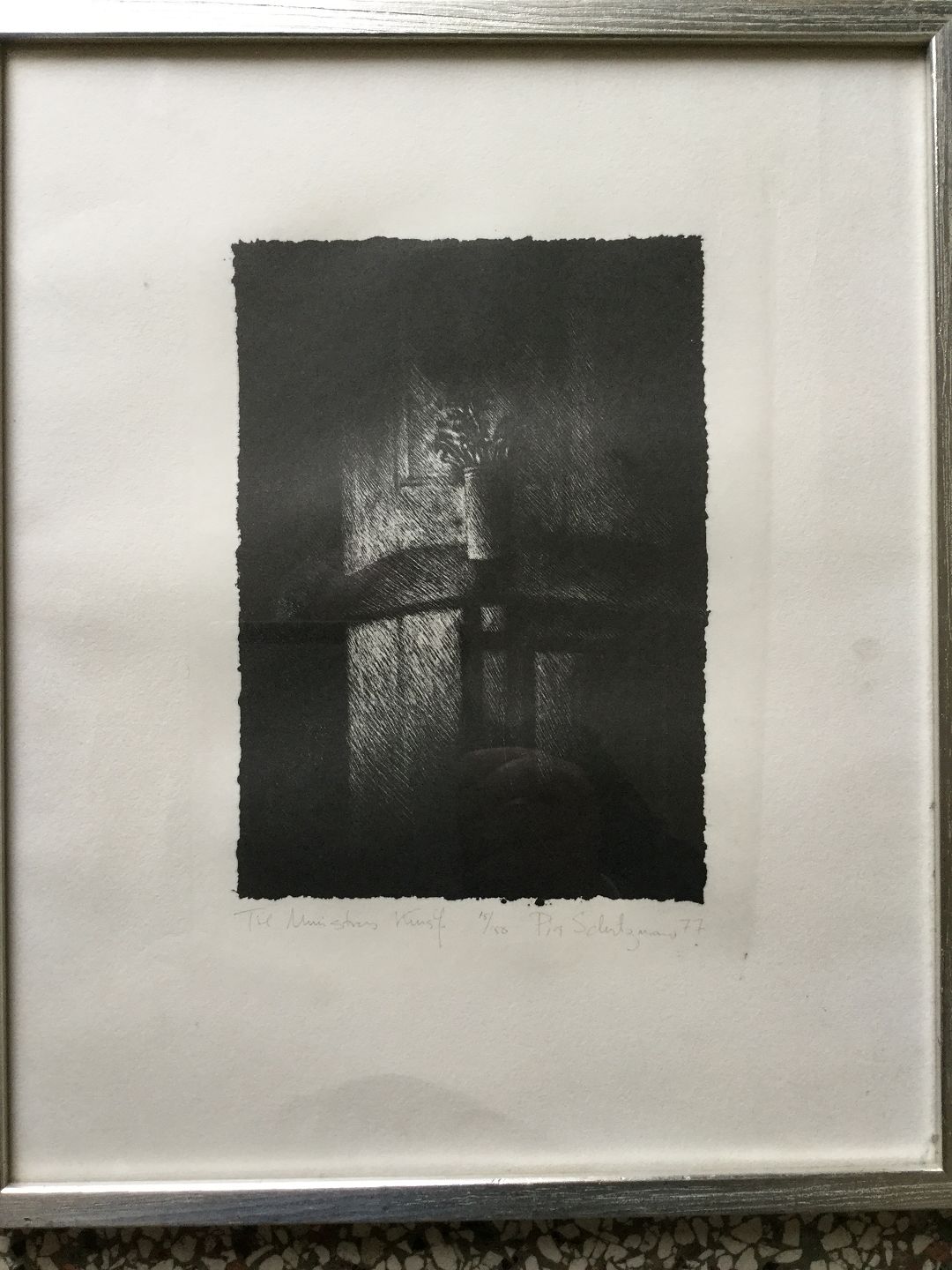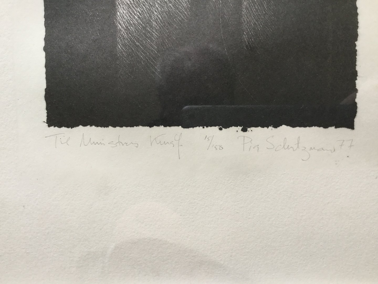Pia Schutzmann er uddannet fra Kunstakademiet i København (grafisk skole ved Palle Nielsen 1970-77).